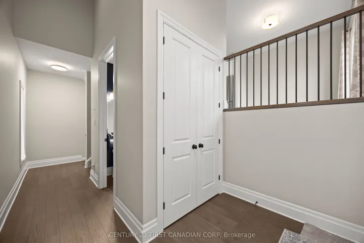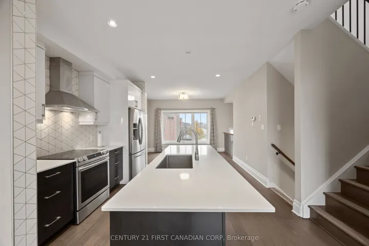 +"PublicRemarks": "Gorgeous red-brick end-unit townhome in sought-after Sunningdale, North London, featuring a finished walkout basement! Built in 2018 by esteemed Westhaven Homes, this property combines timeless style with modern convenience in one of the city's most desirable neighbourhoods. Step into the expansive foyer, complete with ample storage and soaring ceilings, conveniently paired with a two-piece bathroom. The main level is flooded with natural light and showcases beautiful engineered hardwood flooring throughout. The open-concept design allows each space to flow effortlessly. The kitchen features stainless steel appliances, premium quartz countertops, a contemporary backsplash, and a large island with seating for four. The dining area includes an oversized picture window, while the comfortable and spacious living room is anchored by a striking natural gas fireplace with ceramic tile surround, upgraded bump-out, and custom built-in shelving and storage. Massive sliding doors with transom windows lead to the private deck with BBQ gas hook up and one of the largest green spaces in the community-surrounded by trees and natural greenery.The upper level offers three bedrooms, including a generous primary retreat with a walk-in closet and a spa-like 5-piece ensuite featuring a soaker tub, glass shower, and double sinks. A modern 4-piece main bathroom and convenient upper-level laundry complete this floor. The fully finished walkout basement provides a versatile additional living area-perfect for movie nights, a playroom, home office, or guest space-with direct access to lush green surroundings and a second outdoor living area. An attached garage with inside entry adds to the convenience. These striking units offer tremendous value in a premium North London location close to Stoney Creek YMCA, top notch schools, grocery stores, pharmacies & more. Don't miss this incredible opportunity! Floor Plans Available."