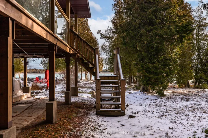 +"PublicRemarks": "This exceptional Lake Huron point property offering sweeping, uninterrupted water views and rare privacy, with shoreline wrapping three sides. Set at the end of a quiet road with 390 feet of shoreline, this retreat features a naturally sheltered harbour ideal for swimming, paddling, and launching watercraft-perfect for families or investment purposes with great rental potential. The raised bungalow offers two levels of living, with the main floor showcasing a bright, open-concept kitchen, dining, and living area oriented toward stunning lake vistas. A propane fireplace adds warmth, while multiple walkouts lead to a covered wraparound deck with water views and outdoor access from two bedrooms, the dining room, and the living room--creating exceptional indoor-outdoor flow for relaxing, dining, and entertaining. Three bedrooms and two full baths complete the main level. The full walkout basement is unfinished and ready for customization, offering potential additional living space, a guest suite, or income potential. Appliances, most furnishings, and a hot tub are included, making this a ready-to-enjoy waterfront escape or a strong short-term rental opportunity. Centrally located between Tobermory & Lions Head positions this retreat close to the Bruce Trail, National Parks & many other popular attractions. 137 Pine Tree Harbour blends peace, nature, and adventure in a truly unmatched setting."