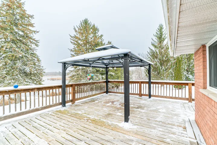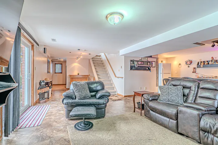 +"PublicRemarks": "Welcome to this charming bungalow set on 1.17 acres with direct frontage on the Scugog River, offering a peaceful setting. The main floor features a bright kitchen with hardwood floors and a walkout to the yard, a dining room with access to the deck, and a comfortable living room with a gas fireplace. Three bedrooms and a 4-piece bath complete the level. The fully finished walkout basement expands your living space with a cozy recreation room featuring a gas stove and bar area, an office, and a combined laundry/utility room. Outside the property impresses with a durable steel roof, a Generac system installed in 2024, and a 35' x 60' Quonset Hut with a 14' door, ideal for storage, hobbies, or equipment. Enjoy direct waterfront access and the privacy of a spacious lot with still being minutes to Lindsay and all amenities."