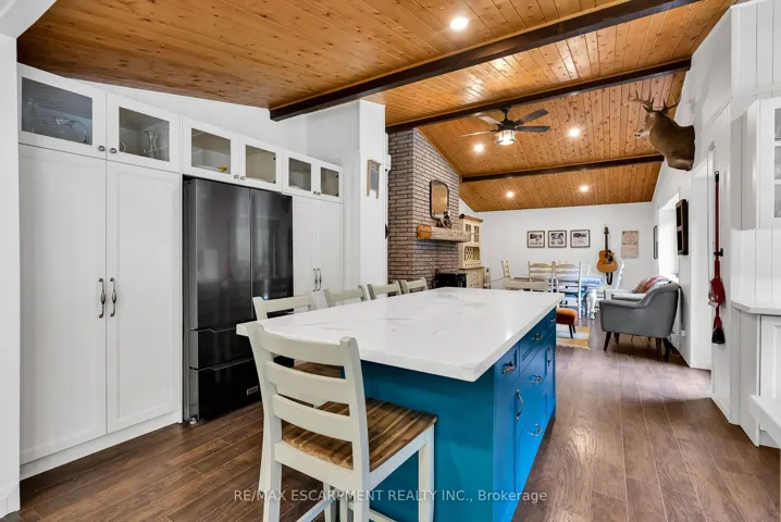 +"PublicRemarks": "Welcome to 155 Hofer Road your private retreat on 18+ acres of rolling countryside. Renovated and thoughtfully designed, this family home offers the perfect balance of rustic charm and modern comfort. Step inside to a bright and inviting family room where soaring vaulted ceilings, exposed beams, and a wood-burning fireplace create a warm and welcoming atmosphere. Huge windows and a walkout to the deck fill this space with natural light, while pot lighting adds a touch of modern style. The open-concept kitchen and dining area is the true heart of the home, featuring quartz countertops, a farmers sink, a central island, and plenty of storage and prep space ideal for both everyday living and entertaining. On the main level, you'll find two generous bedrooms, including a stunning primary bedroom with a luxurious 5-piece ensuite. A second bedroom and a beautifully updated 4-piece bath ensure comfort and convenience for family or guests. The fully finished lower level provides even more living space with three additional bedrooms, a 3-piece bath, a laundry room, and a large rec room with its own walkout. Perfect for a growing family or hosting overnight guests. Outdoors, every season brings new adventures. In summer, relax in the pool or hot tub, explore the river running through the property, or entertain family and friends on over 1,200 sq. ft. of deck space. Evenings are made for gathering around the firepit under the stars. In winter, lace up your skates and enjoy your own private pond just steps away. Stay connected with Starlink, enjoy the convenience of school bus route access, and appreciate being just 10 minutes to town with easy 401 access. This isn't just a home its a place where every season brings new memories, new adventures, and a way of life you've been waiting for. The only thing missing is you. Its Time to Make YOUR Move!"