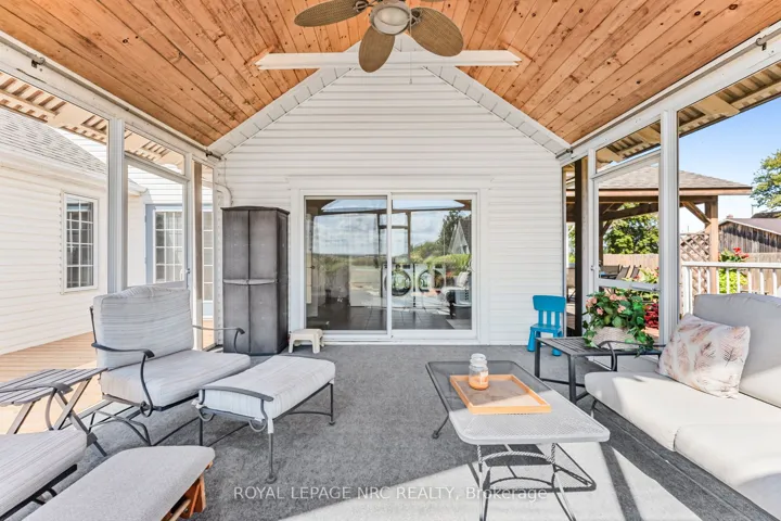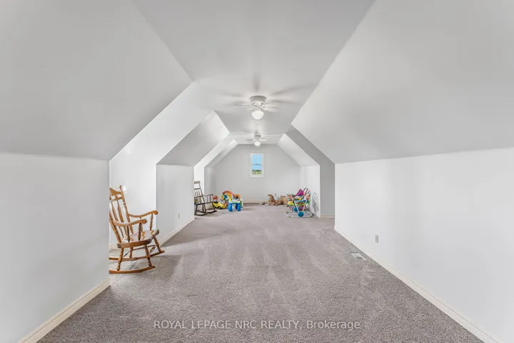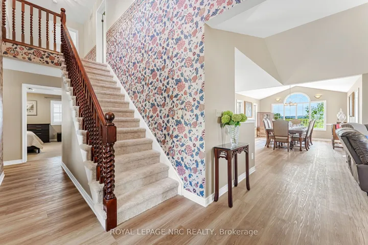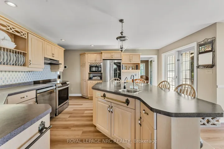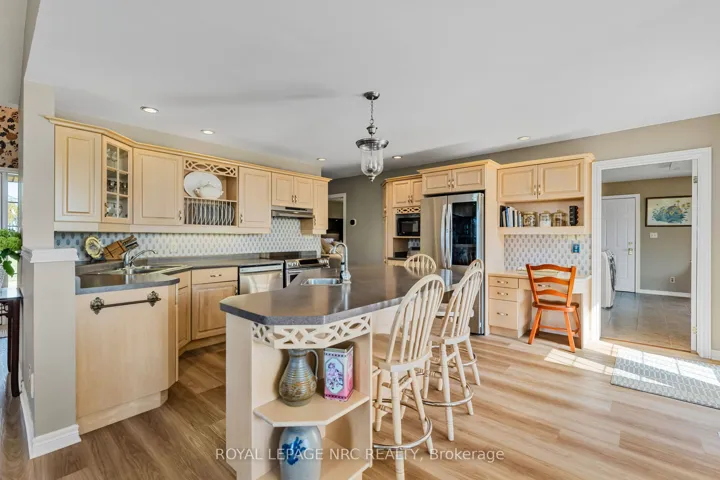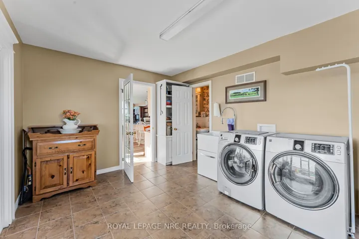 +"PublicRemarks": "Beautifully maintained custom 2-storey home situated on 2 picturesque acres, surrounded by vineyards! This 3368sqft home showcases several living spaces, ideal for multi-generational & growing families. Welcoming front porch leads into a spacious foyer. French doors open into a lovely den/music room with a cathedral ceiling and a large window overlooking the landscaped front yard. The living room has a focal fireplace, flanked by beautiful windows. This house is designed for entertaining. The kitchen is the centre of the home. Sit down and sample a glass of local wine at the oversized centre island and enjoy an amazing meal with family and friends in the formal dining room. Generous main floor laundry room opens opens to screened-in15x14 porch and to a separate covered deck, ideal for barbecuing in any weather. The main floor also includes a two piece guest bathroom, and the primary bedroom suite with double entry doors, walk-in closet and updated 3-piece ensuite bath. Stand-alone glass shower with rain shower head for the perfect spa experience. Spacious mud room off of the 2 car garage has large double closets and leads into a very spacious office with separate entry. Primary bedroom/ensuite/office have California shutters. On the second floor, two bedrooms share a generous jack and jill bath, each with their own vanity. The second bedroom has a gorgeous window seat overlooking the backyard and the lush surrounding vineyards. The third bedroom, upper hall and stairs showcase brand new carpeting. The second floor also includes a huge bonus room, as well as a large dressing room custom furnished by Closets By Design. The basement is the perfect in-law suite with over 1300 sqft of living space, private entrance, and brand new flooring, gas fireplace and all new kitchen appliances! New furnace and hot water heater as well. 40x60 machine shed has 2 large bays perfect for large vehicles and equipment. One side also serves as a workshop with heated floors!"