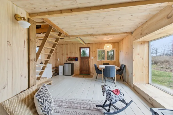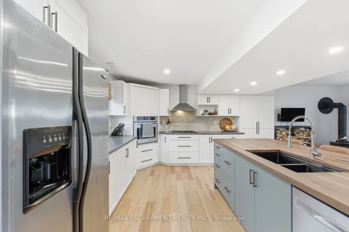 +"PublicRemarks": "Incredible opportunity to own this rare two-family home set on a full one-acre property, just seconds from downtown Binbrook. Both units are fully above grade and feature completely separate front and rear entrances, offering versatility for multi-generational living or rental income. North Suite: Step inside to an updated kitchen equipped with built-in stainless-steel appliances, a butcher-block island, modern trim work and beautiful hickory engineered flooring. The bright living/dining area provides the perfect space for family gatherings and entertaining. The lower level features a renovated rec room with a cozy fireplace-ideal for movie nights. Upstairs are two bedrooms with excellent storage and an updated 5-piece bathroom. South Suite: The professionally designed kitchen showcases a warm, inviting aesthetic with a gas stove, stainless steel appliances and quartz countertops. Enjoy a spacious family room filled with natural light, two main-floor bedrooms and an updated full bathroom. A generous mudroom with separate laundry completes this level. A third bedroom is located in the finished basement. Outdoor Living: You'll love the stunning sunsets on summer nights. The expansive 1-acre yard offers everything you need-an on-ground pool, a 3-car garage/workshop, extensive vegetable gardens and a charming garden house with lots of potential. There is ample space for entertaining, relaxing and enjoying country living just moments from town. RSA."