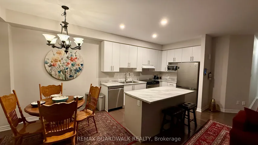 +"PublicRemarks": "This townhome has 3 bedrooms, 3 bathrooms and a fully finished basement. an open-concept kitchen with a breakfast bar and easy access to the living and dining. Warm hardwood flooring throughout the main level. Stainless steel appliances. Direct access to the rear yard through sliding glass patio doors. The primary Bedroom features a spacious walk-in closet. Modern 3-piece en-suite with a window for natural light and a subway tile surround for bath/shower. Deep under the sink storage and a bank of drawers. Two secondary bedrooms with large windows, and spacious closets. A fully finished basement extends the living space and provides ample storage & spacious laundry room. A great family oriented neighbourhood."