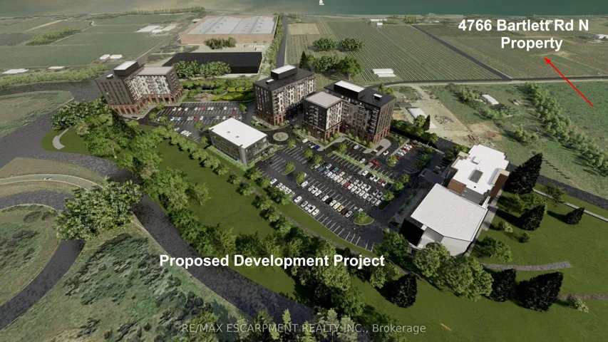 +"PublicRemarks": "Discover an extraordinary opportunity at 4766 Bartlett Road North in Lincoln, Ontario - a 16+ acre parcel perfectly poised for both residential living and dynamic business ventures. Zoned A-73, this versatile property not only permits a residential dwelling but is ideally suited for an agricultural enterprise - most advantageously as a Garden Center. Imagine establishing a thriving business right at the Ontario Street exit on the QBW, where high traffic ensures maximum exposure. The potential doesn't stop there. This location offers exciting possibilities for other ventures such as a farmers market, brewery, winery, greenhouse operation, landscape supplier, or even an agricultural equipment dealership. Adding to the allure, a $400 million development project - featuring a hotel, event centre, and mixed commercial and residential spaces - is proposed on a neighboring vacant parcel, less than 300 feet away. Whether you're an investor, developer, or a family looking to launch a business, this expansive property in Beamsville is your blank canvas to create lasting success."