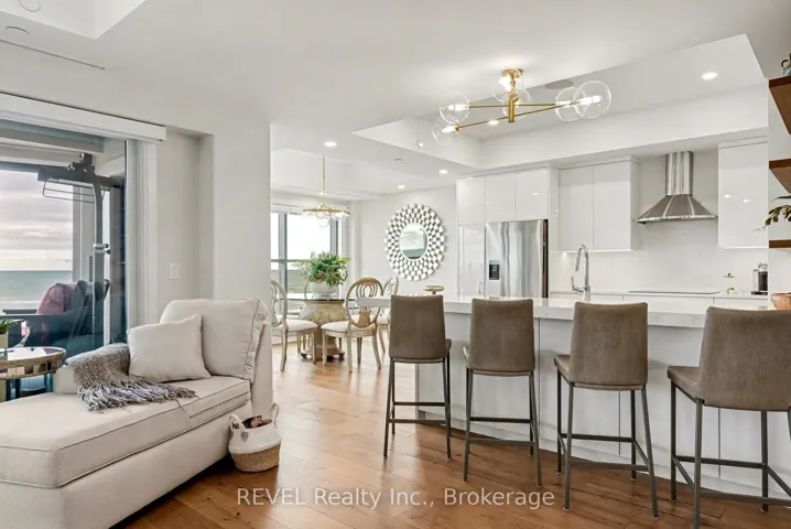 +"PublicRemarks": "Welcome to The Beaches at Port, one of St. Catharines' most desirable boutique condo buildings. Suite 101 offers a rare opportunity to enjoy luxury living along the waterfront, paired with peaceful views of Lakeside Park and sweeping, unobstructed panoramas of Lake Ontario. Floor to ceiling windows bring in natural light throughout the day and showcase incredible sight lines, including the CN Tower, Oakville shoreline, and the Skyway Bridge. The custom Artcraft kitchen with built-in Fisher & Paykel appliances opens to a bright living and dining space designed for relaxing or hosting. A 260 sq ft terrace extends your living area outdoors, perfect for taking in sunset views over the lake. Thoughtful upgrades include a remote screened balcony, gas line for BBQ, tiled balcony flooring, Hunter Douglas motorized shades in every room, 40" door ways to accommodate wheelchairs Sonos sound system, heated floors in both bathrooms, and a full alarm system. Condo fees cover snow removal, grounds maintenance, visitor parking, insurance, storage locker and water. With the planned Hoverlink Ontario service expected to provide a 30 minute connection between Toronto and St. Catharines, this location is poised to become even more convenient. A refined lakeside lifestyle awaits..make this home yours today."