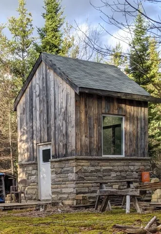 +"PublicRemarks": "This peaceful and private 3-acre property sits on a paved, plowed year-round road with mail delivery and hydro at the lot line. Across the road are two small horse hobby farms, adding to the quiet rural charm. The forest is carefully maintained, with underbrush cleared to 7-8 feet for an easy-to-walk, park-like setting. Mossy paths, natural brush fencing along the lot lines, and a mix of hardwoods and softwoods-including young oak, beech, maple, larch, cedar, tall spruce, and 70' red pines-create a beautiful, tranquil landscape where deer often wander. Three solid, fully insulated bunkies provide comfortable on-site living while you build your dream home. The rear bunkie is 10' 12'+ with a soaring 17' pine ceiling, loft, large windows, and an antique wood stove ready for installation. Two additional 10' 12' bunkies in the center of the property feature cultured stone and wood exteriors, metal roofing, full insulation, and one includes a loft and antique stove. Combined, they sleep 6-8 people. A 6' 8' tool shed and a 5' 8' outhouse with a shower stall offer added convenience. All structures are solid, sealed, pest-proof, and sold as-is.The property includes seven skids of cultured stone worth several thousand dollars, extra sheets of metal roofing, and stacks of 1"-4" live-edge lumber. A three-barrel water-catchment setup and two self-watering raised garden beds with squirrel-proof hinged covers make gardening effortless; the beds recently nurtured 30 walnut trees now planted along the lane. A natural stone fire pit, chopped firewood, and the beginnings of a pole barn/log shed complete this unique offering. With no bear sightings ever-just peaceful woodland living-this is an ideal place to settle, explore, and build your future."