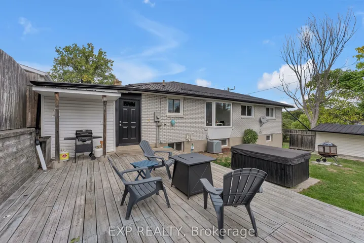 +"PublicRemarks": "Turnkey legal duplex in the heart of Frankford, ideal for homeowners or investors. This property features a durable metal roof, two separate driveways, and an attached garage, leading into a fully updated main unit with three bedrooms, a renovated 4-piece bath, and a refreshed kitchen (2024) with quartz countertops, a modern backsplash, and new luxury vinyl flooring, baseboards, and paint throughout (2024). The dining area brings in excellent natural light through a wide front window that brightens the main living space. The vacant lower unit is self-contained with its own kitchen, living room, dining area, private bedroom, an updated bathroom, a new fridge, and a walkout separate entrance, and was previously rented for $1,540 plus hydro, demonstrating strong income potential. The fully fenced backyard includes a large deck and a storage shed, offering great outdoor living space, along with additional exterior upgrades such as a new front deck (2024), new upper unit main driveway, and a hot tub (2023). The property provides 5+ parking spaces between both driveways, giving each unit dedicated parking. Conveniently located close to CFB Trenton, Batawa Ski Hill, Highway 401, and minutes from local restaurants, shops, and essential amenities, this home offers an excellent opportunity for living with income support or adding a reliable rental asset to your portfolio."