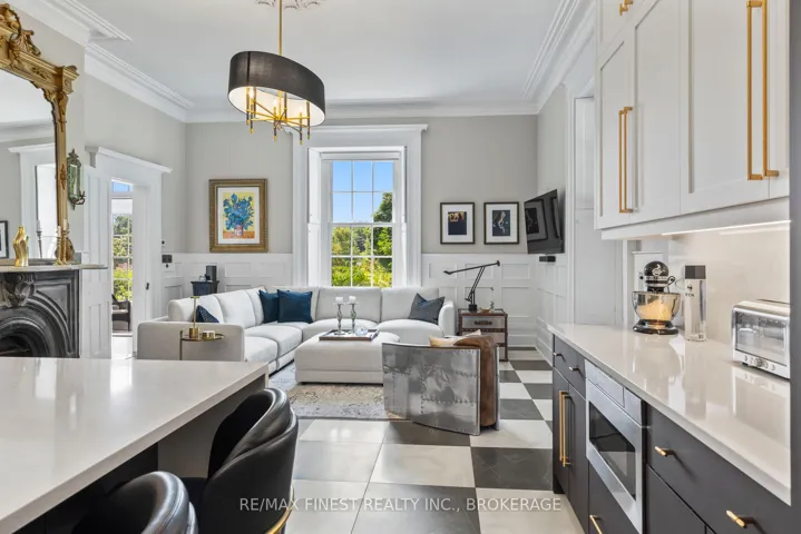 +"PublicRemarks": "Woodfield Manor, built in c.1855, this landmark residence was once home to noted civil and railway engineer Samuel Keefer. Keefer, who oversaw the Brockville & Ottawa Railway and the construction of Brockville's historic railway tunnel, left behind a legacy, and this grand estate is part of it. Sitting proudly on an expansive city lot, Woodfield Manor has been carefully updated in recent years, blending modern luxury with timeless character. Step insidethe bright and airy conservatory, where motorized upper windows invite a natural breeze. The grand entrance hall makes a statement with soaring ceilings and a stunning two-tone 16-light chandelier set against black-and-white porcelain tile with in-floor heating. The main floor is drenched in natural light with thoughtfully added motorized blinds for comfort. At its heart lies a custom chefs kitchen, a true showpiece featuring a Dacor gas range & built-in refrigerator, fully customized cabinetry & drawers, large waterfall island & seamlessly integrated appliances. A renovated powder room compliments the main floor, while the great room and adjoining living/dining areas with refinished original pine flooring create inviting spacesfor relaxation or entertaining. From here, step onto a large covered patio overlooking theprivate backyard retreat-complete with an outdoor kitchen, in-ground pool, and landscaped gardens. This property feels like your own private resort, peaceful and secluded. Upstairs, four generously sized bedrooms with refinished original pine flooring. The expansive 6-piece bathroom includes a laundry area, while a modern well appointed 3-piece bath functions perfectly as a cheater ensuite. Adding versatility, a private secondary suite with its own driveway offers two bedrooms, a kitchen, family room and separate laundry. Outside the gorgeous landscaping frames the homes stately facade. A piece of history that has been lovingly preserved and ready for its next chapter!"