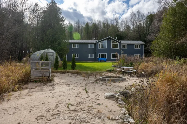 +"PublicRemarks": "Brewster's Lake - over 200' waterfront with a bungalow, shop and garage on a 3.2 acre hardwood lot. Lake views from nearly every room in the home. Spacious rooms throughout the 2,500 square foot main level including open concept kitchen, dining and living areas with vaulted ceilings and a wood-burning fireplace. The walkout basement is fully finished with massive family room, office or 5th bedroom with ensuite; walkout to hot tub, patio and lakeside. SHOP 30x52 with in-floor heat, spray foam insulation, Trusscore interior, 3 roll up doors; detached single garage and attached double garage with in-floor heat. On demand hot water, generator back up, metal roof, new windows (2018), central air, water system, greenhouse, hot tub and more. The private waterfront boasts a sandy beach, dock and firepit. Four season living in a four season playground 20 minutes to Collingwood and Blue Mountain, 10 minutes to Devils Glen Country Club (private) and minutes away from year-round trails and recreational activities. Includes part ownership of additional waterfront lot."