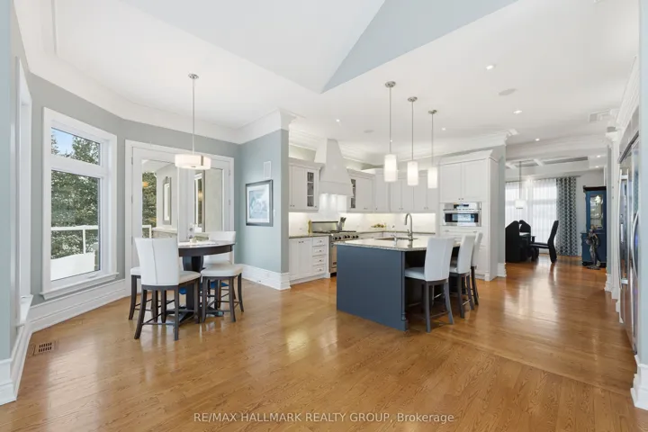 +"PublicRemarks": "Exclusive executive waterfront estate offering over 200 ft of pristine frontage on the Ottawa River, located in the safest no-flood zone. This oversized bungalow features over 3,000 sq.ft. on the main level plus a fully finished 3,000-sq.ft. walkout basement, delivering exceptional space and panoramic river views.Designed for refined living and entertaining, the property includes a newly installed in-ground pool, triple garage, and seamless indoor-outdoor flow. Interior highlights include 10-ft ceilings on both levels, abundant natural light, and a rare layout where all three main-floor bedrooms feature private ensuites. A spacious executive office welcomes you, while the living room, kitchen, dinette, den, primary suite, and secondary bedroom all enjoy stunning water views. The walkout level offers a waterfront family room, game room, and home theatre.FRANÇAISDomaine exécutif riverain exclusif offrant plus de 200 pi de façade sur la rivière des Outaouais, situé dans une zone sécuritaire sans risque d'inondation. Ce bungalow surdimensionné propose plus de 3 000 pi au rez-de-chaussée ainsi qu'un sous-sol entièrement aménagé de 3 000 pi en rez-de-jardin, offrant des vues panoramiques exceptionnelles.Conçue pour recevoir et profiter pleinement du cadre, la propriété comprend une piscine creusée récente, un garage triple et une circulation intérieure-extérieure remarquable. L'intérieur se distingue par des plafonds de 10 pi aux deux niveaux, une luminosité abondante et une configuration rare où les trois chambres du rez-de-chaussée possèdent chacune leur salle de bain attenante. Le niveau inférieur complète l'ensemble avec salle familiale, salle de jeux et cinéma maison orientés vers le bord de l'eau."