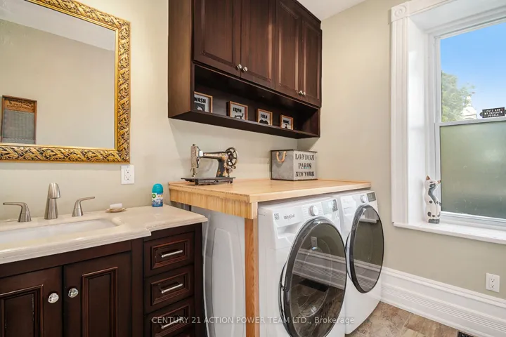 +"PublicRemarks": "This property is considered a local historic site, given its architecture. With many years of love and care for this home, the present owner has improved and upgraded this home with love, & with quality materials, and nothing was spared for you to keep enjoying this wonderful home. Wood flrs, oak all over, ceramic in kitchen & baths, 12 1/8 inches high baseboards all real wood at a cost of $20K, 9' high ceilings, Kitchen brown cabinet oak/granite counter top, white high gloss melamine, coffee bar with mini sink and mini fridge, Range is Jenn Air with middle griddle, Bosh double fridge. Main flr 2-pc bath with laundry, vanity with limestone countertop and ceramic flr. access to a newly built garage with a loft perfect for the man cave or family playroom, or added living space with an extra-wide staircase. The upper ensuite bathrm offers granite on the walls, porcelain on the flr and in the shower. The main upper 4-pc bathrm with a soaker tub and a marble countertop single sink. All bedrms have oak flrs in a special design. The primary bedrm offers his & hers closet, access to a beautiful ensuite which offers double vanity w granite countertop, bidet toilet that has dual water temperature, heated seat and night light that changes colors the shower is 3' x 5' in ceramic tiles and glass drs, large hanging mirror on wall Incl, and further gives access to your private balcony to rest and read your special book. List of work done as follows: Modified Bitumen Roofing 2024 with a 20-year transferable warranty, Paved driveway 2024, Garage/loft 2025, Furnace & HWT & A/C 2018, Insulation attic 2022, Electrical 2020-2021, 3-faced gas fireplace 2021 between dining rm & living rm. Gas BBQ line 2023, Kitchen 2021, Plumbing PEX 2018-2022, basement blown insulation & drywall 2024, Doors 2022, Walkway around veranda 2023-2024, shed 12' x 12'. Never be out of power ever again with this Generac generator will keep you warm or cool w/everything working. Seller will entertain all offers"