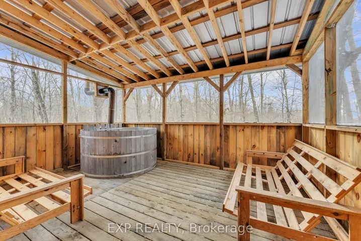 +"PublicRemarks": "Welcome to Thunder Lane, a once-in-a-generation offering of more than 259 acres in Eastern Ontario's most quiet spectacular region. Located just 7 km from Highway 7 between Tamworth and Arden, the landscape feels like your own private wild world, with lakes, forest, rock, elevation, and over 20 km of private drivable roads reaching every corner. The property includes its own sand and gravel quarry with a rock-walled road and exposed resources, offering unique opportunities for building and long-term planning. A peaceful clearing opens to a large spring-fed pond, and multiple high points reveal sweeping views of lakes, wetlands, and wide open wilderness-rare vantage points that make the severance and building potential here truly exceptional.Deep in the trail network sits a massive 30' x 80' coverall building ideal for equipment, storage, or future plans. Following the western road brings you to Thompson Lake, a deep spring-fed gem with over 3,000 feet of private shoreline, two boat launches, and a pretty off-grid waterfront cabin overlooking incredibly clear water. The cabin, screened porch with hot tub, and any existing systems are offered as-is/where-is providing a cozy retreat and leaving flexibility for buyers to explore upgrades or redevelopment subject to their own due diligence.With RU and WRU zoning across such a large and varied landscape, buyers have the opportunity to investigate a wide range of potential uses-whether for a private family retreat, a hunting or recreational property, multiple future building sites, or other possibilities contemplated within municipal guidelines. West-facing shoreline areas present standout natural settings, including dramatic rock faces that drop into deep, clean lake water.Properties of this scale and character rarely reach the market. Thunder Lane is more than acreage; it is a private wild world with generational value, offering extraordinary space, privacy, and a canvas for remarkable future possibilities. *video tour*"