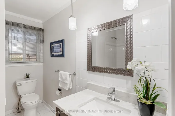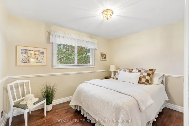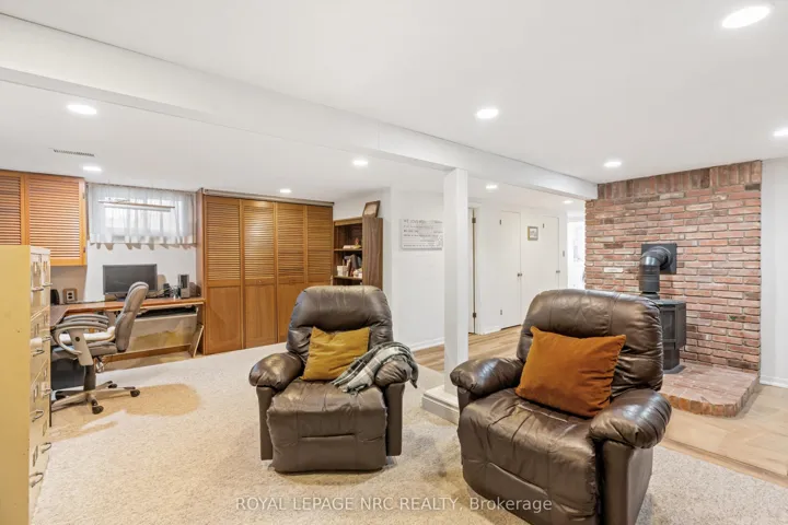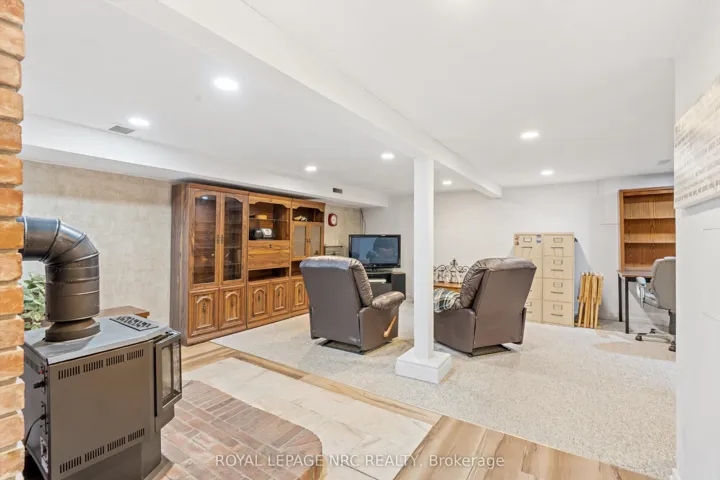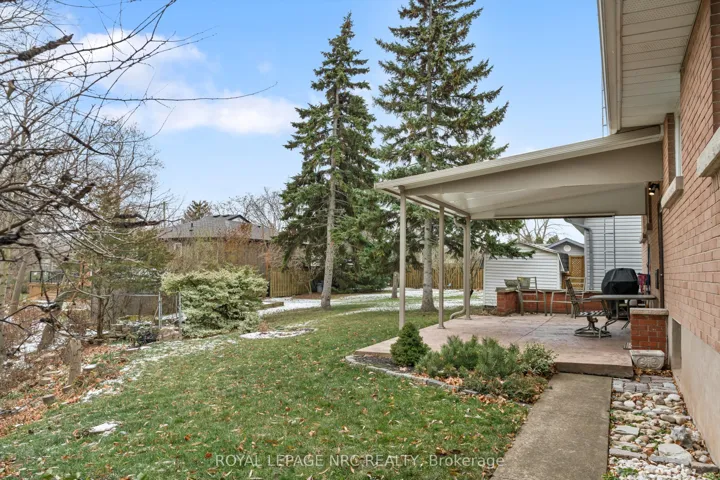 +"PublicRemarks": "Desirable Walker's Creek location offering a lovely view of the ravine, trees, and the relaxing sound of a rippling creek. This mid-century, three-bedroom home with double garage has been meticulously maintained and updated. Overlooking the rear yard, the updated kitchen offers white cabinets, Quartz countertops, three appliances, and a picture perfect view from the window. The lower level is fully finished, featuring a large recreation room with a free-standing gas fireplace, a finished laundry room with a dryer, built-in cabinets and a sewing area, a second bathroom with a shower, two storage closets, and a large utility/workshop room. Both bathrooms have been updated. The rear yard offers a covered patio, a true retreat for enjoying the natural surroundings. Additional noteworthy updates include an owned hot water heater, electrical breaker panel, and sump pump with battery backup, approximately seven-year-old roof shingles, a gas fireplace installed in 2023, two new garage doors installed in 2025, living room window and fridge replaced approximately three years ago. Some other features include hardwood floors, generous closet space, L-shaped living and dining room, central air and a forced-air gas furnace. This special home has been enjoyed by the current family for many years but is now ready for its next family. Close to walking trails but no public trail is behind the house. In the area there is a large park, Grantham Plaza shopping center and a short direct route to the QEW."