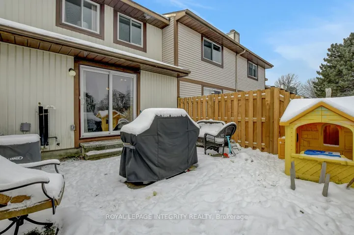 +"PublicRemarks": "Welcome to this bright and inviting two-storey townhome offering exceptional value with no front or rear neighbours and outstanding backyard privacy. The main floor features an open-concept layout filled with natural light, creating a warm and functional space for everyday living and entertaining. The second level includes generously sized bedrooms, a primary suite with a spacious walk-in closet, and a modernized full bathroom (2021). The newly finished basement (2025) provides additional living space with a comfortable family room, along with an unfinished area ideal for laundry, storage, and a workshop. The private backyard backs onto a school and features mature hedging, a mix of patio stone and grass, and a new fence (2025). This freshly painted, move-in ready home includes several major updates: shingles (2020), furnace and A/C (2023), washer and dryer (2024), and dishwasher (2025). Located in a family-friendly neighbourhood close to parks, schools, shopping, groceries, and quick highway access, this property offers an excellent opportunity to join a welcoming community you'll be proud to call home."