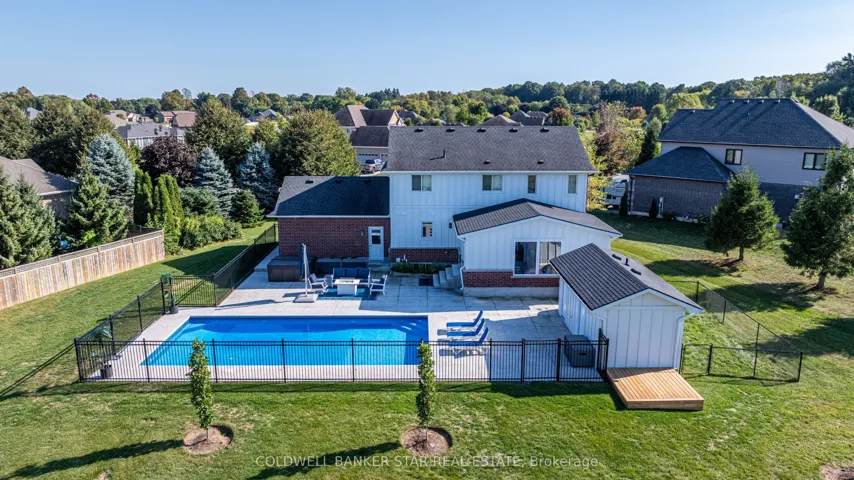 +"PublicRemarks": "Discover this stunning custom-built Colonial 2 storey home, perfectly situated on a beautiful 1.01 acre pie-shaped lot complete with an 18' x 36' heated in-ground Pool. Built by Hayhoe Homes and located in the desirable Wales Subdivision in the village of Copenhagen, this exceptional property offers rural tranquility with convenient access to local amenities and just minutes south of Aylmer and north of the Lake Erie beaches of Port Bruce. Step inside from the charming covered front porch to a welcoming Foyer leading to a bright, south-facing Den and a spacious open-concept Diningroom with a cozy gas Fireplace. The adjoining dream Kitchen will impress any home Chef with quartz countertops, an oversized quartz island with sink, a pantry & 3 stainless steel appliances including a gas stove with a pot-filler faucet. Entertaining is effortless in the expansive Familyroom, highlighted by backyard views and a garden door opening to the patio and pool area. A convenient 2-piece Bath near the main floor Laundry Room which offers interior access to the heated 2 car Garage, with flecked epoxy flooring and auto door opener. Upstairs, you'll find 4 generous Bedrooms and a central 5-pc Bath. The primary suite offers abundant closet space and a 4 piece ensuite Bath. The full basement offers excellent potential for future finishing to suit your family's needs. Outdoors, enjoy the front perennial gardens - accented with stacked limestone boulders, a double-wide paved driveway with room for 6 vehicles, and a massive fenced yard overlooking the peaceful countryside. Summer living is at its finest as your family and friends splish-splash in the resort quality 18' x 36' heated in-ground Pool surrounded by a concrete patio, 5' black steel fencing and the 10' x 20' Pool Shed offers a convenient 3-piece seasonal wash/change room. This meticulously maintained executive home offers space, style, & lifestyle - everything you've been looking for. Don't miss this opportunity to make it yours."