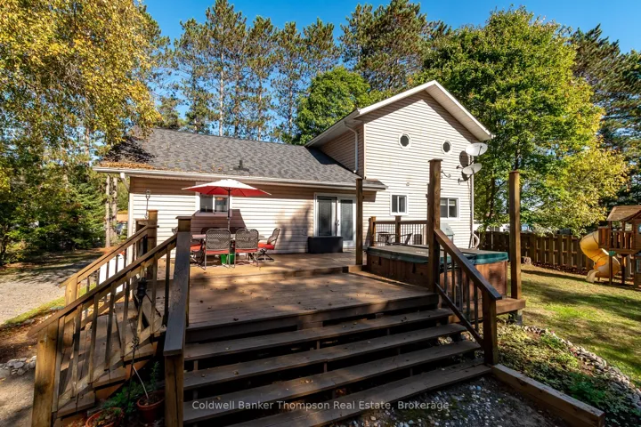 +"PublicRemarks": "Nestled in rural Huntsville, this 5-bedroom, 2.5-bathroom home or cottage spans over 2000 square feet, offering a blend of comfort, style, and endless possibilities. Just steps away from the shores of stunning Buck Lake, this propertys prime location means you're always moments from the sand and waves a dream come true for water enthusiast! Inside, the open-concept kitchen, living, and dining spaces are designed with entertaining in mind, boasting soaring vaulted ceilings that create an airy, inviting ambiance. The main floor also offers two guest bedrooms and a 4-piece washroom, ideal for family or friends. Step out from the dining area onto extensive decking, where you'll find plenty of space for outdoor gatherings or a perfect play area for the kids. Upstairs, the entire second floor is devoted to the primary suite, complete with a walk-in closet, a 3-piece ensuite, and your very own private balcony to enjoy the peaceful surroundings. The partially finished lower level includes two additional guest bedrooms, a 2-piece powder room, and a large unfinished space ready to become a rec room or whatever your heart desires. The detached oversized double car garage, with front and rear doors, provides added convenience and ample storage. Whether you're seeking a tranquil year- round retreat or a full-time home, this property promises to make every day feel like a beach day."