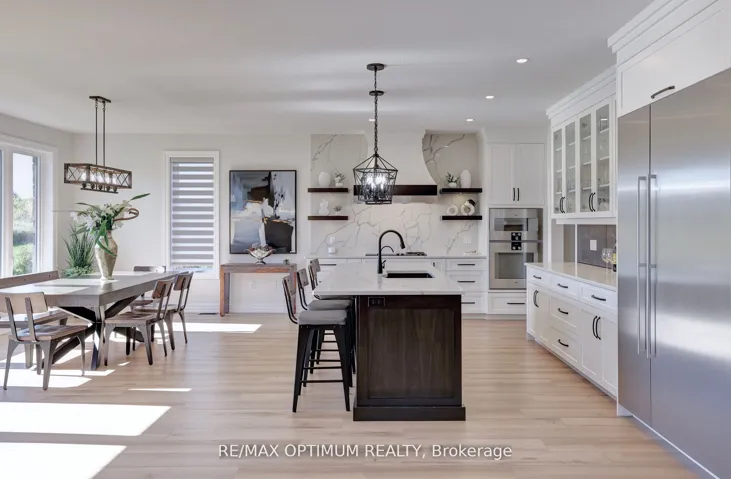 +"PublicRemarks": "Welcome to 23 Whitcombe Way, Puslinch, a stunning custom-built bungalow that seamlessly blends modern grandeur with serene countryside charm. Set on over half-acre lot with tranquil pond views, this home features a heated triple-car garage. Inside, a vaulted 15-ft foyer welcomes you into a spacious living room with a gas fireplace, while the gourmet kitchen shines with Gaggenau appliances, a quartz island, and bespoke cabinetry extending to a butlers pantry. The main-floor primary suite offers a private porch walkout, custom walk-in closet, and a 5-piece spa ensuite with heated floors and a fireplace. With 4+1 bedrooms (one currently a gym downstairs, one office/den main floor), three luxurious baths, and closets fitted with organizers, this residence is designed for both elegance and functionality. Outdoor living shines with a covered porch featuring a built-in BBQ, outdoor kitchen, and motorized screens, while the walkout lower level includes a wet bar, fireplaces, custom cabinetry, and a stone patio with a hot tub. The professionally landscaped yard is a private oasis with stone interlocking, an 11-zone sprinkler system, and mature trees, complemented by a custom shed and 2025-upgraded front and basement doors. Located minutes from Highway 401, top-rated schools, Guelphs shopping and dining, Starkey Hill trails, and Mountsberg Conservation Area, this home offers the perfect balance of nature, luxury, and convenience a true hidden gem in Puslinch."
