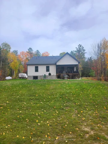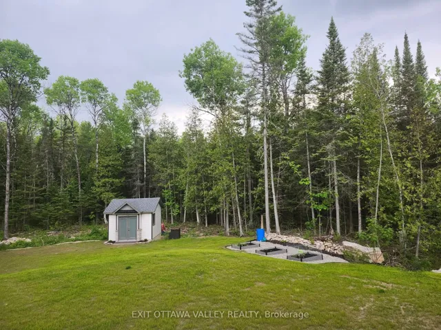 +"PublicRemarks": "For those who love nature and seek privacy, this newly built home in 2023 may be for you. Nestled amongst the trees on a large lot, this unique farmhouse style bungalow is beautifully landscaped with natural stones, perennials and features a stone steps to a Fibron covered porch into house. Enter through the front foyer with barn style french doors. Hang your jacket and tuck your boots away in the mudroom with shelving, hooks and bench seat. Lovely open concept main floor has a modern farmhouse feel and features Kitchen with granite counter tops, stainless steel appliances including propane range, glass tile backsplash and pantry with butcher block shelves. Dining space accommodates a larger table and seating, and living room features propane fireplace and natures view from every window. Main level also includes laundry room, 4 pc bathroom with cultured marble topped vanity, and barn board ceramic in tub, as well as 2nd bedroom with glass sliding closet doors. Finally the primary suite features walk in closet and 3pc ensuite with shower and vanity with butcher block top and vessel sink. Basement layout was designed with an older child in mind. 2 large bedrooms with a common area at the bottom of stairs. 3pc bathroom with shower and hanging vanity also features a 3x3 area home to a makeup area with marble top. Family room is sunny and has a bump out for a future fireplace. Garage is drywalled and insulated with mezzanine storage and Fibron step with Regal Railing into house. Your favourite spot to sit will be the covered deck at the back with Fibron decking, Regal Railing metal railing and flush mounted lighting. It has a great view of the yard and flag stone patio below, custom shed and garden area with raised beds. House also features Generlink which connects to any portable generator, front interlocking stone path way and tons of parking. Only 20 minutes to Pembroke! Come check out country living!"