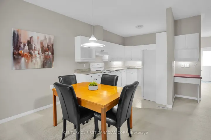 +"PublicRemarks": "Make yourself at home in this bright and well-maintained end-unit townhome in a quiet, well-managed East London complex backing onto Genevieve Park. The main floor features a spacious open-concept living and dining area, convenient main-floor laundry, and an updated kitchen with stainless steel appliances, ample cabinetry, a breakfast nook, and walk-out access to the backyard, perfect for everyday living. The upper level offers three generously sized bedrooms, including a large primary bodroom, along with a full 4-piece bathroom. The finished lower level provides additional living space with a comfortable family room, den, second 4-piece bathroom, and plenty of storage, making this home ideal for families, professionals, or students seeking extra space. This move-in-ready townhome has been refreshed with fresh paint, new lighting, trim, and baseboards, and includes newer forced-air heating and cooling for year-round comfort. Conveniently located close to shopping, restaurants, medical services, public transit, parks, and schools. Just minutes to Fanshawe College and a short drive to Western University. Immediate possession available. Tenants to pay water, heating and hydro. Some photos are virtually staged."
