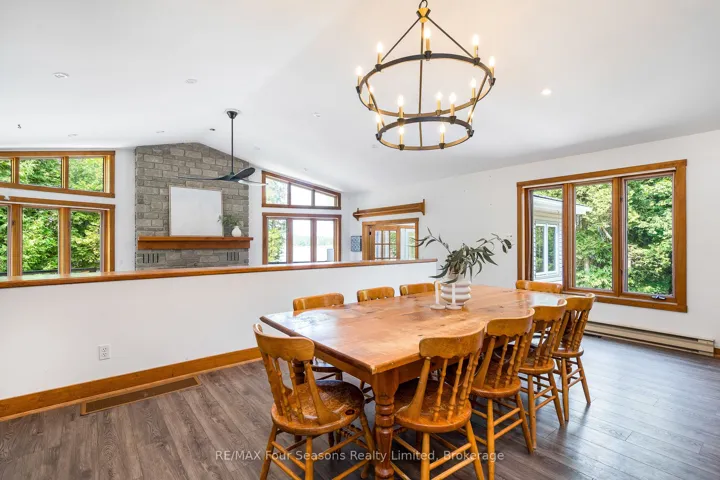 +"PublicRemarks": "Captivating Waterfront Estate on Brewster's Lake~5.14 Acres with 167 Feet of Shoreline! Welcome to your private lakeside retreat in the heart of Grey Highlands where nature and lifestyle converge. Situated on the serene shores of Brewster's Lake, this 5 bedroom, 3-bathroom chalet- style home offers over 3800 sq. ft. of beautifully designed living space with unspoiled waterfront and panoramic western vistas that promise unforgettable sunsets. Whether you're seeking a full-time residence, a seasonal getaway, or an investment opportunity, this property delivers (Property ~ Seller is currently using Lower Level as a licensed Air Bn B and lives full time on the main level. Perfect for generational living opportunities). HIGHLIGHTS *New Metal Roof 2025 *Expansive deck (walk out~1157 sf) *Patio with hot tub, *Bunkie *Sauna *Waterfront dock *Open concept design ideal for entertaining *Cathedral Ceiling *Double garage with inside entrance *2 Exquisite Stone Fireplaces with Wood Inserts (WETT Certified) *Main Floor Laundry *Lower Level Laundry *4 Season Sunroom *Lower level walk out. LOCATION: Just minutes from ski clubs~ Devils Glen, Osler Bluff, Blue Mountain *Championship Golf Courses~ Mad River, Osler Brook, Duntroon Highlands *Georgian Bay, *Waterfalls *Farmers Markets *Historic Downtown Collingwood *Village at Blue *Extensive Hiking/Biking Trails *ATV/Snowmobile Routes *Top-Tier Fishing right off your dock. Live where you play, Grey Highlands is the Home of Four-Season Adventure: kayak, swim, snowshoe, cross-country ski, or relax by the waters edge. With its proximity to both private and public recreational hubs, this property suits families, active retirees, weekenders, or those seeking a peaceful escape. Elevate your Lifestyle. Live your Legacy~ Your Waterfront Dream Starts Here! View Virtual Tour and Book your Showing Today!"