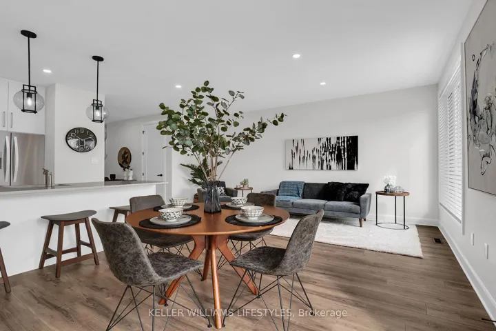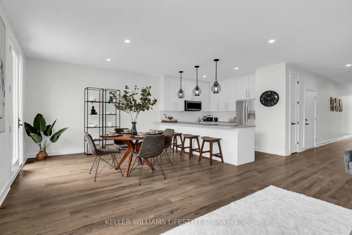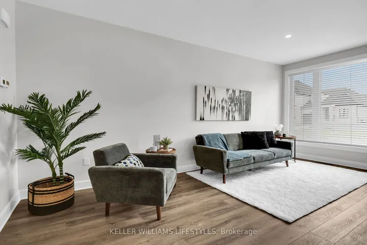 +"PublicRemarks": "Located just minutes from London's west end, the charming community of Kilworth offers a perfect blend of small-town atmosphere and everyday convenience. Set near the Thames River and surrounded by natural scenery, this area provides easy access to the city while enjoying a quieter setting. This modern townhome is part of the Aura development, known for its contemporary architecture and stylish design.This approximately 1,731 sq. ft. two-storey townhome features 3 bedrooms and a bright open-concept layout. Highlights include 9-foot ceilings, 8-foot interior doors, an oak staircase with steel spindles, wide-plank stone polymer composite flooring, pot lights, and modern fixtures throughout. The great room flows into a gourmet kitchen with quartz countertops, a large peninsula, modern cabinetry, and a stainless steel appliance package. The primary bedroom offers a spa-inspired ensuite with glass shower, double sinks, quartz counters, and a walk-in closet. Additional features include an unfinished basement, large windows, and a deck off the great room. Available February 15th"