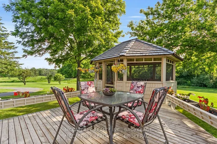 +"PublicRemarks": "Charming 2 story home that blends timeless elegance with modern comfort. Nestled on just over 15 pristine acres of manicured lawns and mature trees, this private sanctuary is more than a home, it's an experience. Lots of driveway space and an attached 2 car garage offers convenience while maintaining the home's aesthetic. Outdoor gatherings become unforgettable events on the expansive deck, with a gazebo and a woodfired pizza oven. The welcoming foyer offers warmth and love that has been meticulously infused into every corner. The bright, eat-in kitchen features modern updates that blend seamlessly with timeless touches. Step out through the side door onto the deck to the natural beauty of your surroundings. An elegant dining room, provides a seamless flow into the cozy living room with built-in bookshelves and an electric fireplace. A generously sized laundry room, with garage entrance and a well placed 2pc bath completes this level. Ascending the classic wooden staircase, you'll discover two bright and airy bedrooms, each offering a tranquil escape. The shared 4pc bathroom serves these rooms with elegance and functionality. The Primary bedroom features a great sized walk-in closet and a 3pc ensuite, both enhanced by heated granite tile floors for added comfort. An unfinished basement, where boundless storage options and a perfectly situated cold room await your creative touch. Outside, the property unfolds further with an updated 24'x40' insulated rustic barn that doubles as an ideal woodworking shop or more garage space. A delightful, fully functioning cottage that overlooks a tranquil stream meandering through the land. This quaint retreat could serve as a writer's studio, guest house, or a serene spot for personal reflection. Every corner of this home, barn, cottage, and the idyllic surrounding property tells a story., a cherished haven for its original owners, who have created unforgettable memories here. Now it's your turn to write the next chapter!"