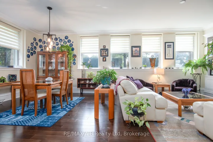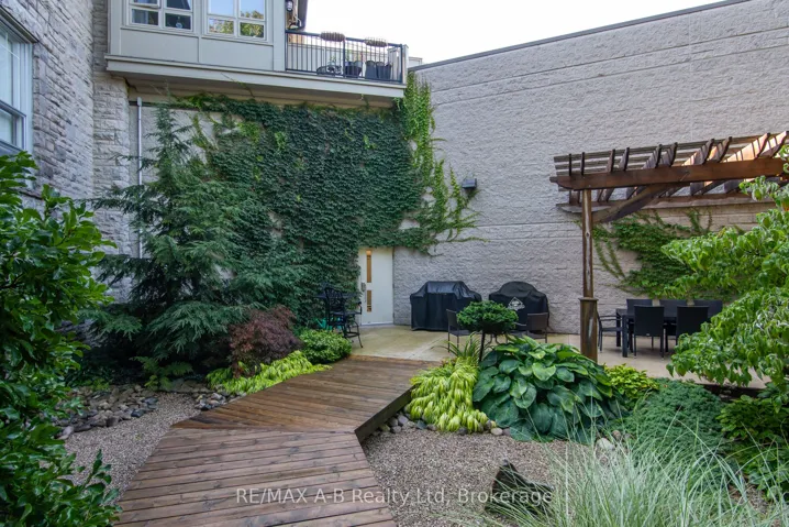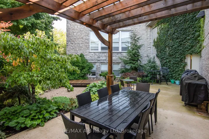 +"PublicRemarks": "This unit is flooded with light! And its placement on the lower level provides for a private outdoor area and direct access from the parking lot. Central School Manor, 189 Elizabeth St., is a designated historical building comprised of 15 condo units. Built as a school in 1914 from local hand-hewn limestone, its transformation began 100 years later with a vision & the goal of maintaining the building's historical character while adding uniqueness, luxury and elegance. The perfect combination of timeless architecture is blended with the sophistication of contemporary living. From the moment you enter this stunning building, prepare to be awed. Suite 1C's foyer welcomes you into a rich space with a coffered ceiling that leads to a glass-door, private entrance to a large, exclusive-use courtyard. This 1449 sq ft, immaculately maintained 2-bdrm, 2-bath suite boasts 10' ceilings with crown moulding & 12" baseboards. Natural light is abundant with the 10, 5' high windows with deep sills. Open concept principal areas with the living room focused on a fireplace wrapped by custom cabinetry. The kitchen is a chef's delight. High-end appliances include an induction stove with double ovens and an under-counter, slide-out microwave. Counter and island surfaces are durable quartz. Double stainless-steel sink includes a garburator. Primary bedroom features a walk-in closet and ensuite. Other assets include W&D, reverse osmosis water treatment and in-floor radiant heat. Included are a large nearby locker, bicycle holding room and 2 outdoor parking spots. While all this may sound like qualities not found in century condos, we cannot overstate the lavish living this suite offers. The grounds are graced with a beautiful landscaped common garden with a BBQ, dining facilities and tranquil areas, a common room with a fireplace, kitchenette, table seating, shuffleboard and an area for gatherings, reading & table games. Many accessible features, including an elevator!"
