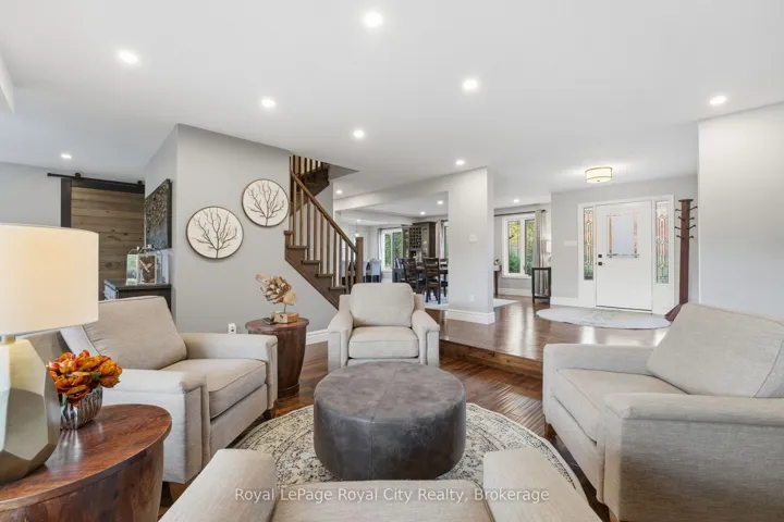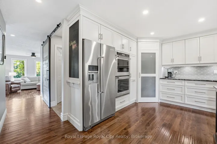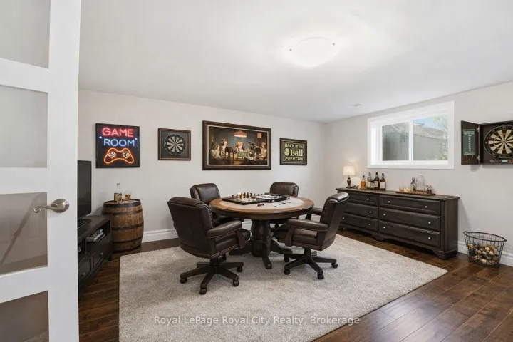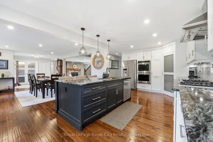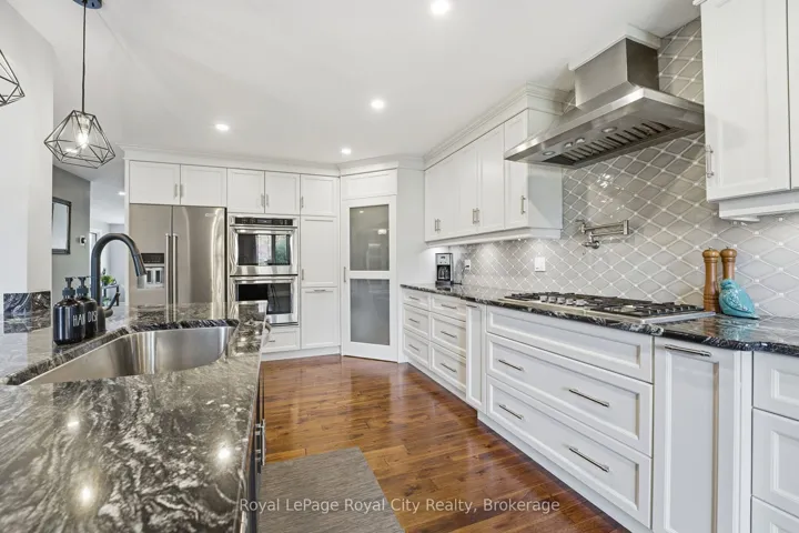 +"PublicRemarks": "Welcome to a rare offering in one of the area's most coveted neighbourhoods.Set on a mature, tree-lined 1 ACRE lot with towering maples and a circular drive, this exceptional 1.5 storey home blends timeless character with REFINED MODERN LIVING. The reclaimed brick exterior hints at the craftsmanship within, while the private, RESORT STYLE BACKYARD is truly one of the finest in the community.Step outside and prepare to be impressed. A SALTWATER POOL anchors the outdoor oasis, complete with a charming POOL CABANA featuring a GAS FIREPLACE and multiple SEATING AREAS that invite relaxation and entertaining. A TWO LEVEL COMPOSITE DECK & COVERED PAVILION boasts a HOT TUB overlooking a second stone patio with FIREPIT and GAZEBO. Lush PERENNIAL GARDENS surround the entire yard, ensuring colour and beauty year round.Inside, the home is equally impressive. The main floor is designed for both connection and comfort, open concept ,yet thoughtfully defined. LARGE PRINCIPAL ROOMS, framed by GENEROUS WINDOWS, fill the space with natural light. The living room features a STONE FIREPLACE handcrafted by a local mason, paired with a RICH TIMBER MANTLE that becomes the heart of the home.The grand MAIN FLOOR PRIMARY suite is a sanctuary of its own, offering an oversized bedroom, a dedicated DRESSING ROOM, and serene views of the grounds. The versatile kitchen is ideal for both everyday living and entertaining, complete with GAS COOKTOP, DOUBLE OVENS, GRANITE island, WALK IN PANTRY, and a BEVERAGE STATION. Upstairs, two additional bedrooms share a full bath.The fully finished WALK UP BASEMENT adds exceptional functionality with a BILLIARDS AREA, BAR for entertaining, TV/MEDIA SPACE, GAMES ROOM and three additional bedrooms, perfect for extended family or guests.A rare opportunity to own a home that combines CRAFTSMANSHIP, LUXURY AND PRIVATE outdoor living all MINUTES TO AMENITIES and conveniences of the South End of Guelph and quick access for commuters. IMPRESSIVE."