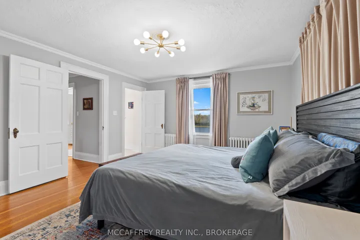 +"PublicRemarks": "Step into timeless elegance with this stunning 2-storey brick home, boasting 126 feet of serene waterfront on the Napanee River. From the moment you enter the welcoming foyer, you're greeted by a sweeping wood staircase, original hand-textured plaster walls, and soaring ceilings that set the tone for the character and charm throughout. To the right, a sunlit living room with a wood-burning fireplace invites cozy evenings, while a stone-framed den with wall-to-wall windows creates the perfect office or reading retreat. On the left, the spacious dining room flows into a gourmet kitchen with an island and walkout to the back deck ideal for entertaining. A convenient side entrance connects to the attached brick garage, insulated and upgraded in 2025. Upstairs, the primary suite offers a peaceful haven with a walk-in closet and a spa-inspired 5-piece bathroom featuring a soaker tub and shower with stunning river views. An additional bedroom and a versatile third bedroom or office provide flexible living, with the option to expand further. And a sleek new 3-piece bathroom completing the upper level was added in 2025. Rare for its era, the fully finished lower level includes a family room, home gym, spacious laundry room, and abundant storage, including the original pantry cellar. Outside, 2025 brought thoughtful updates with fresh exterior upgrades and professional grading to enhance both curb appeal and peace of mind. A large deck with screened-in gazebo invites gatherings, while mornings begin with breathtaking sunrises over the water. Dock your boat or cast a line from your private dock, or simply enjoy the river breeze in your backyard retreat. Set on municipal services and just minutes to downtown Napanee, VIA Rail, and Highway 401, this home blends heritage character with modern upgrades and an extraordinary riverfront lifestyle waiting to be yours."