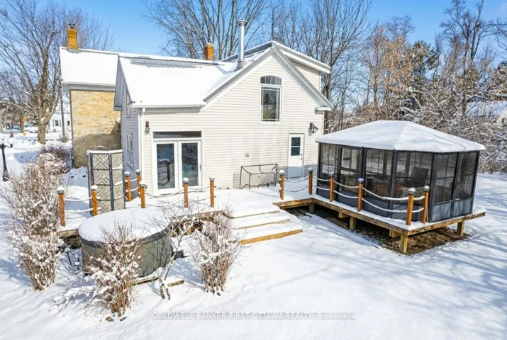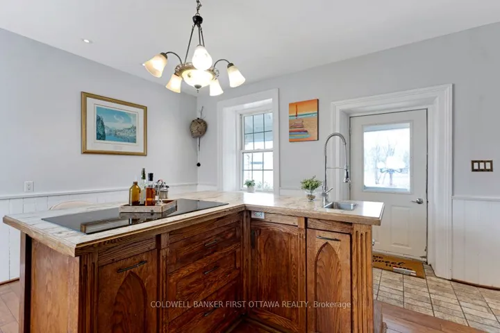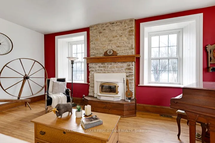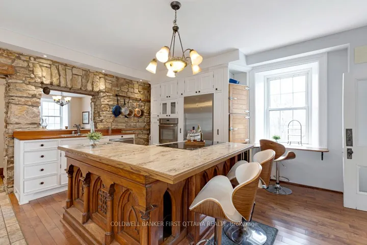+"PublicRemarks": "Set on 1.88 acres at the edge of historic Perth, this beautifully preserved 1875 stone home blends enduring character with thoughtful modern updates and space to grow. Lovingly maintained, it captures the soul of a true century home while offering today's comforts - most notably a showstopping chef's kitchen anchored by a one-of-a-kind island crafted from a reclaimed church altar. The interior offers three bedrooms and 2.5 bathrooms, including a stunning primary suite with a spa-inspired ensuite and a bright, tranquil bedroom that feels like a private retreat. Original hardwood floors, soaring ceilings, and intricate details reflect the craftsmanship of another era. A formal living room with a wood-burning fireplace insert and a separate dining room create inviting spaces for entertaining, while the cozy family room, warmed by another wood fireplace, is perfect for relaxed evenings at home. The dining room also features a natural gas fireplace and a convenient pass-through to the kitchen, ideal for gatherings large and small. Outdoors, enjoy a spacious screened-in solarium, a hot tub on the back deck, and a large barn brimming with potential, whether for a workshop, studio, or even a small flock of chickens. The home is serviced by its own well, providing excellent-quality water. Set well back from the road, the property offers rare privacy and a peaceful, country feel just minutes from downtown Perth's shops, restaurants, and charm. A truly special home with a rich history and plenty of room to imagine what comes next."