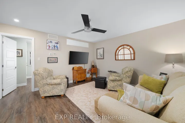 +"PublicRemarks": "Welcome to Old Paisley Mews in Caledon East. A quiet secluded enclave. This beautifully maintained end unit bungalow with loft (a rare offering) has the space & privacy of a multi-level home with the convenience of main floor living. With nearly 1500 sq ft above grade plus a professionally finished 1125 sq ft lower level, you'll enjoy an impressive 2615 sq ft of total living space. The foyer features high ceilings & large ceramic tile that continues through to the kitchen with tons of cabinetry, pantry storage, generous counter space & freshly painted solid maple cabinets. The open-concept living room is warm & inviting, perfect for gatherings or quiet evenings at home. The main floor bedroom includes a walk in closet & 4pc ensuite, plus a walkout to the backyard. The dining room was originally the 3rd bedroom & can easily be converted back with the addition of a wall & door. Upstairs the loft retreat is a standout feature: a large bedroom, an updated 3PC bath & a charming reading nook complete with custom built-in library shelving. A perfect space for a primary suite or a private guest level. Professionally finished lower level is exceptional. It offers a large family room with a gas fireplace, a full bedroom with closet, a 3PC bath, oversized laundry room. Step outside to a private fully fenced backyard with no home directly behind. The interlock patio provides ample space for outdoor dining, gardening or simply unwinding in nature. Craftsmanship is showcased throughout, custom woodworking, wainscoting, crown moulding & upgraded trim. All flooring has been replaced & bathrooms have been stylishly updated. Parking for 3 cars. POTL fee of $153.30/mth, which covers common elements including private roads, visitor parking, snow removal. This home includes one bedroom in the loft, one on the main level, and a third possible bedroom presently used as a dining room. This room can be restored to its original bedroom layout with the addition of a partition wall."