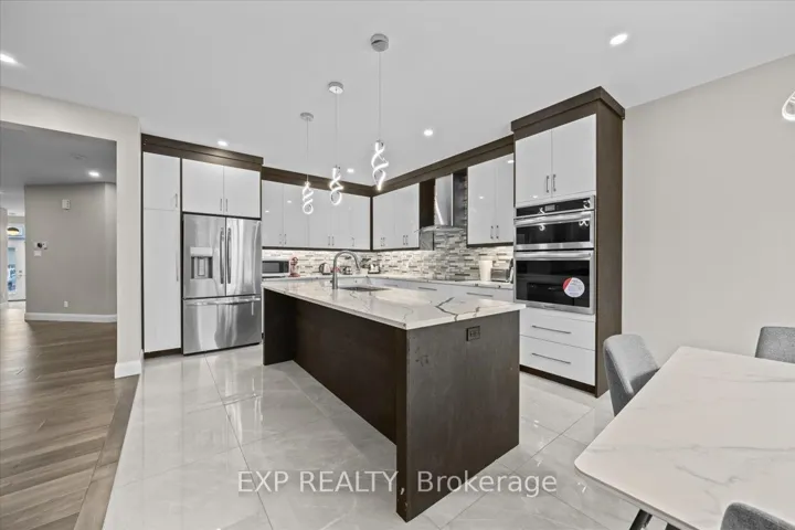 +"PublicRemarks": "This beautifully crafted custom-built home offers the perfect blend of space, style, and high-end upgrades in one of Kanata's most sought-after neighbourhoods. Designed with attention to detail and finished with quality throughout, the home features a spacious foyer leading into an open-concept main floor, complete with gleaming engineered hardwood and oversized tile flooring. The stunning designer kitchen boasts extended cabinetry, granite countertops, an oversized island, and a wall-mounted built-in oven perfect for both everyday living and entertaining. The eating area overlooks a bright and welcoming living room with a sleek linear gas fireplace, while a separate formal dining room adds versatility for hosting. Upstairs, the luxurious primary suite includes a generous walk-in closet and a spa-like ensuite bathroom. Three additional bedrooms each with walk-in closets are complemented by three full bathrooms on the second floor, offering comfort and functionality for a growing family. The hardwood staircase with elegant metal spindles ties the home together beautifully across all levels. The walkout basement features high ceilings, a large family room, a bright bedroom, and a full bathroom ideal for guests, in-laws, or a home office. Additional highlights include interlock and stone landscaping around the property, a new PVC fenced-in backyard for added privacy, and custom zebra window coverings that add both style and functionality throughout the home. Located in the heart of Kanata's high-tech sector, this home is just minutes from the DND Headquarters, Richcraft Recreation Complex, top-rated schools, shopping centres, and The Marshes Golf Club. This is a rare opportunity to own a beautifully finished, move-in ready home that truly stands out in the neighbourhood."