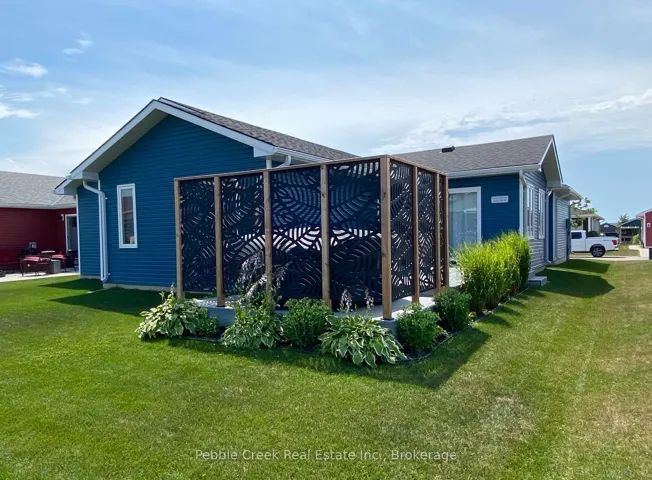 +"PublicRemarks": "Welcome to an amazing lifestyle! Imagine living along the shores of Lake Huron, close to Goderich with its historic town square and abundance of shopping, fantastic golf courses and your own private community recreation center with indoor pool, library and entertainment facilities. This very popular Cliffside B with Sunroom model features nearly 1600 sq ft of living space and a long list of upgrades! Once you step inside this beautiful home, you will be impressed with the spacious open concept, living room with gas fireplace and tray ceiling! The adjacent kitchen offers an abundance of cabinets with oversized center island, pots and pan drawers, pantry, corner turntable and upgraded appliances. The dining room also sports a tray ceiling and the cozy sunroom has a vaulted ceiling and patio doors leading to the extended size composite deck with privacy screen at the end. There's also a large primary bedroom with walk-in closet and 3 pc ensuite bath and a spacious guest room with 4pc bath right beside. Additional features include kitchen pantry and extended height cabinets as well as upgraded light fixtures. Also located throughout the home are custom blinds which are sure to impress! The home offers plenty of storage options as well with an attached 2 car garage, lots of closets and a full crawl space underneath! Situated in The Bluffs at Huron land lease community, just a few streets back from the lake and rec center, this home is a must see for anyone considering moving to this upscale adult subdivision! Bonus 6 appliances included!"