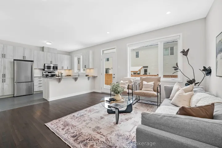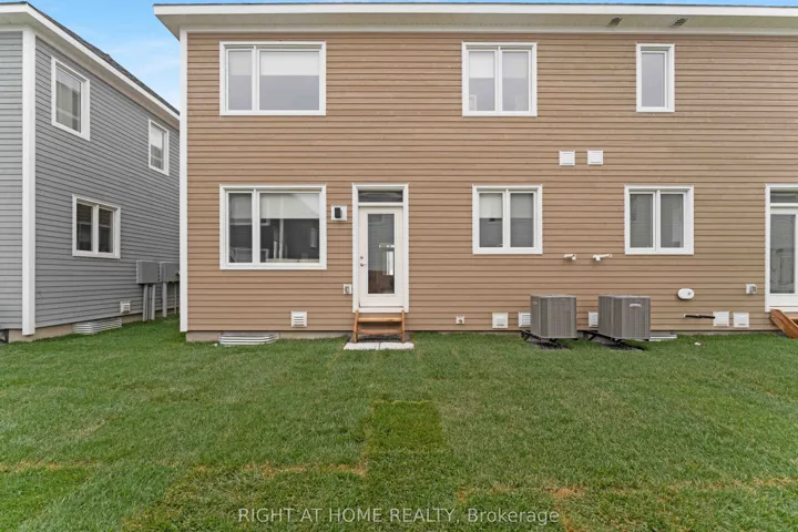 +"PublicRemarks": "2023-BUILT END UNIT. Welcome to 30 Chasing Grove! This beautifully upgraded two-story freehold townhome is nestled in one of Ottawa's most desirable and quiet neighbourhoods. The bright and spacious main floor boasts an open-concept layout with a large great room and modern kitchen, perfect for everyday living and entertaining. A standout feature is the private backyard, ideal for relaxation, gardening, or summer gatherings. Upstairs, the primary suite includes a walk-in closet and an elegant ensuite with a glass shower. Two generously sized secondary bedrooms and an additional full bathroom complete the upper level. The finished basement offers flexibility with an egress window and rough-in for a future bathroom. Over $30,000 in notable builder upgrades include hardwood flooring on the main floor, granite countertops, and a glass shower in the ensuite. This End Unit townhome features stylish finishes and thoughtful design in a family-friendly neighbourhood."