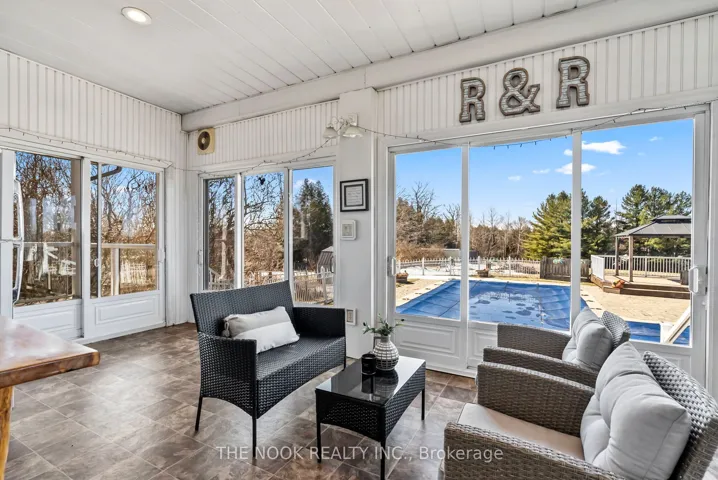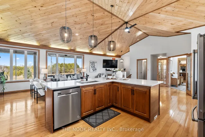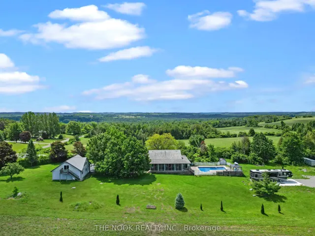 +"PublicRemarks": "Welcome to 593 Pigeon Creek Rd - a stunning 2,296 sq. ft. custom-built bungalow on over 97 acres just minutes from Durham offering endless possibilities! Step inside to soaring vaulted ceilings, sun-filled windows, gleaming hardwood floors, & a bright open-concept layout. The recently upgraded kitchen is a showstopper with a large center island, quartz counters, undermount sink, stainless steel appliances & designer lighting. Enjoy the convenience of main floor laundry & four generously sized bedrooms. Relax in the screened-in porch with built-in hot tub, or take in poolside views from the sunroom overlooking the landscaped 18 x 36 L-shaped inground pool. The fully finished basement is an entertainers dream, with a spacious games room, large wine cellar, & abundant storage. Outdoors, the opportunities are unmatched, a heated detached 30x36 garage with a finished loft featuring gorgeous vaulted ceilings ideal as a guest suite, in-law space or creative studio, a massive 30x60 barn with hydro and its own designated entrance perfect for a wedding venue, hobby farm, or business venture. The property also includes a 24 x 30 drive shed, 15 acres of workable farmland (potential to lease for income), 30 acres of bush, & over 50 acres of Ducks Unlimited-constructed ponds wetlands for infinite adventures hunting, fishing, kayaking, or simply enjoying nature in total privacy and serenity. For even more potential, the property has previous permits granted for Additional Dwelling Units (ADUs); while now expired, it confirms the groundwork is there for future development. Updates include Generac generator (serviced in 2023), furnace (2017), kitchen (2024), main floor lighting (2025), & appliances(2023). This dream home is ideally located just over 20 minutes to scenic Port Perry & 15 minutes to historic Lindsay, offering quick access to all amenities while still enjoying the peace privacy of country living & with easy access to both Hwy 401 & 407, its a commuters dream."