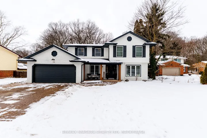 +"PublicRemarks": "Tucked away at the edge of Fonthill on a peaceful, treed lot, 35 Berkwood Place offers the rare feeling of cottage country living-without ever leaving town. Backing onto acres of forest and nestled on a 94 x 357-foot wooded lot, this spacious 4+1 bedroom, 4 bath home offers 2787 sq ft + a finished basement and the kind of backyard privacy that's nearly impossible to find in town. The main floor is light-filled and welcoming, with a cozy family room featuring wood beams and a gas fireplace (2025), French doors to the deck, a sunny bay-windowed breakfast area, and an eat-in kitchen with updated countertops and sink (2023). You'll also find a main floor living room, office, laundry room, and 2pc bath. Upstairs are four bedrooms, including a spacious primary suite with walk-in closet (9.5ft x 9ft), a private balcony, and 3pc ensuite. The family 5pc bathroom includes a double sink and serves the remaining bedrooms. The finished walk-out basement offers in-law suite potential with a rec room, 5th bedroom, 3pc bath, and plenty of storage. The backyard oasis is an outdoor sanctuary with a fenced, inground heated saltwater pool (converted in 2024, with new heater and pump in 2024/2025), multi-level deck, patio, and endless wooded views. Recent updates include roof shingles (2023), most back windows and sliding door replaced (2023), new trim, upstairs bedroom flooring, bathroom vanities, living room beams, light fixtures, and a new A/C unit (2025). Located just minutes from Fonthill, Pelham and Welland's shops, restaurants, schools and golf courses, with quick access to the 406 and QEW. Get ready to host all your friends and family gatherings and summer BBQs here. This is the kind of home that makes every weekend feel like a getaway."
