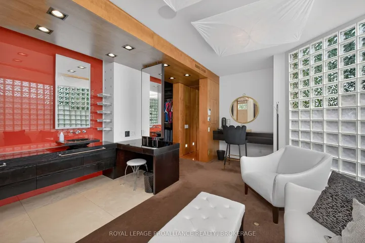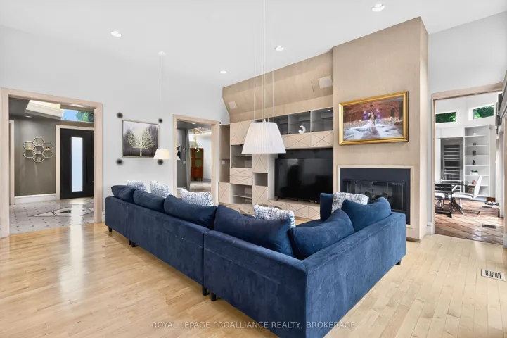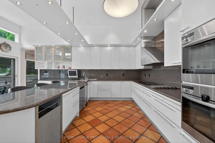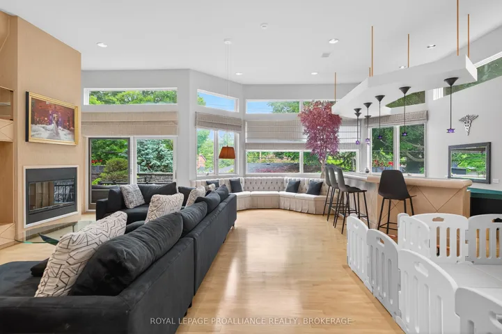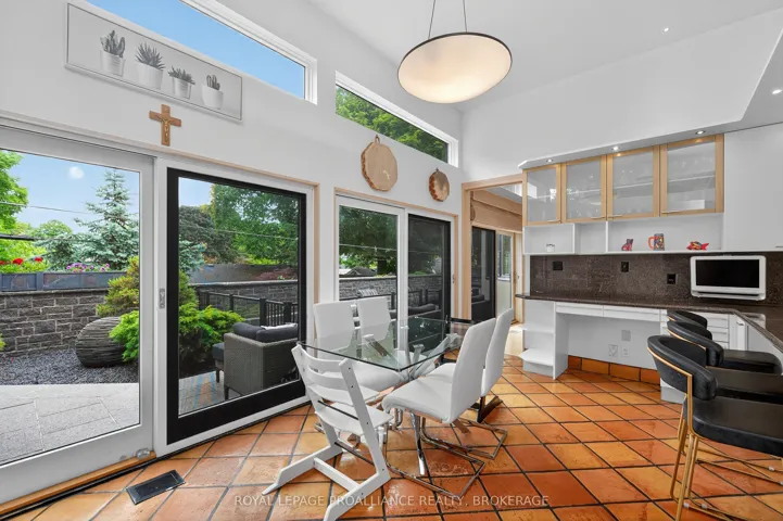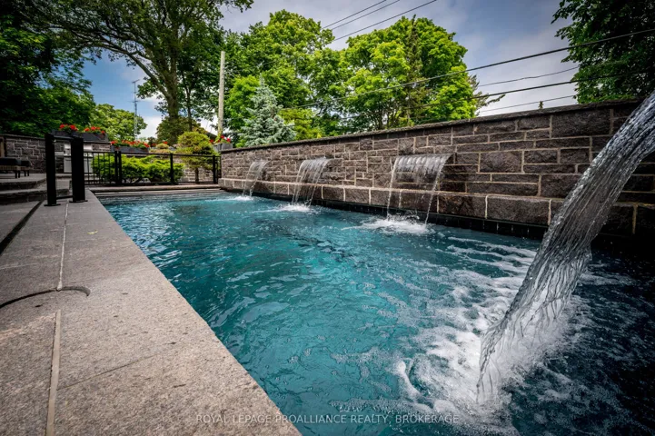 +"PublicRemarks": "A rare blend of luxury, comfort, and family-focused design-this custom-built masterpiece in Kingston's Calvin Park has it all. Located on a quiet cul-de-sac just minutes from Lake Ontario's waterfront trails, this 4+1 bedroom, 6-bath home offers over 6,000 square feet of sophisticated living, tailor-made for modern families. The striking two-tone exterior is elevated by newly refreshed stucco (2024), while the interior showcases expert craftsmanship with rich custom mouldings, elegant panel work, and impeccable finishes. The 2-car garage has been fully drywalled and painted for a clean, polished look. On the lower level you will find flexibility meets function: it features a spacious bedroom, full bath, family room, wet bar, and a comfortable area for children to play-ideal for families who need adaptable space that grows with them. Upstairs, the primary suite is a true retreat with a walk-in closet and a luxurious ensuite featuring a professionally restored marble countertop (2024). Step outside into a private backyard oasis where an inground pool with cascading waterfalls is framed by stone walls and a new safety fence. A stone patio and backyard handrail create an ideal setting for outdoor entertaining and relaxed family time. This home has been extensively updated inside and out: new pool pump and irrigation controller (2024), outdoor AC unit (2023, with warranty), dual furnace heat exchanger replacements, and a new hot water tank (2024). Smart Nest thermostats and an upgraded security system add everyday ease and peace of mind. Close to Queen's University, KGH, and vibrant downtown Kingston, this home balances thoughtful luxury with family-first comfort-an exceptional space to grow, gather, and thrive."