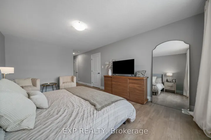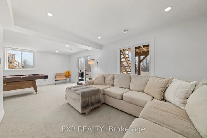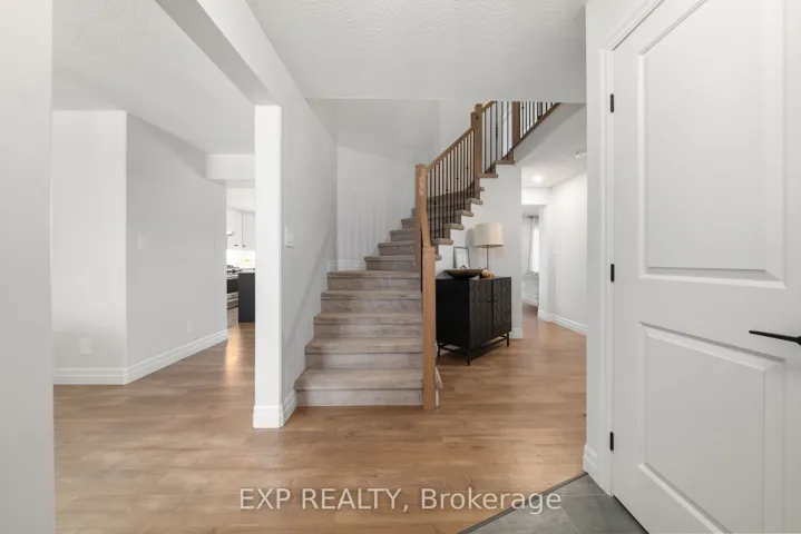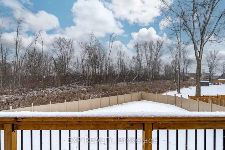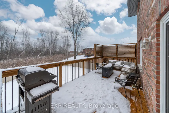 +"PublicRemarks": "Welcome to this meticulously designed 2-storey home, ideally situated in a quiet cul-de-sac in Belleville's desirable East End. Offering just under 3,500 square feet of living space, 5 spacious bedrooms, 4 bathrooms, and luxurious finishes throughout, this property provides the perfect combination of comfort, style, and privacy. The main floor features a bright and inviting living room, perfect for family gatherings and relaxation. The kitchen is equipped with a gas stove, quartz countertops, a pantry for added storage, and sleek cabinetry. The adjacent eat-in area leads to a large deck, offering the ideal space for outdoor dining and entertaining, all while overlooking the expansive, fully fenced backyard. The yard backs onto a protected treed area, providing privacy and a peaceful retreat for both children and adults. Upstairs, the master suite is a true retreat, featuring a spacious walk-in closet and a luxurious ensuite bathroom with quartz double vanity, a separate deep soaker tub, and a walk-in shower. Three additional generously sized bedrooms offer plenty of room for family, guests, or a growing household. The finished walkout basement provides even more living space, with a 5th bedroom, a recreation room, a full bathroom, and an unfinished area currently being used as a home gym, but has space to finish if you choose. With direct access to the backyard, this space is perfect for indoor-outdoor living and entertainment. Experience the comforts of outdoor living with the convenient BBQ gas line hook up. Throughout the home, premium quartz surfaces elevate the look and feel of the entire space, from the kitchen to every bathroom, and the laundry mudroom, ensuring that every room feels modern, polished, and sophisticated. Located in a quiet and family-friendly cul-de-sac, this home offers peace and privacy while being just moments away from schools, parks, shopping, and all amenities in Belleville's East End."