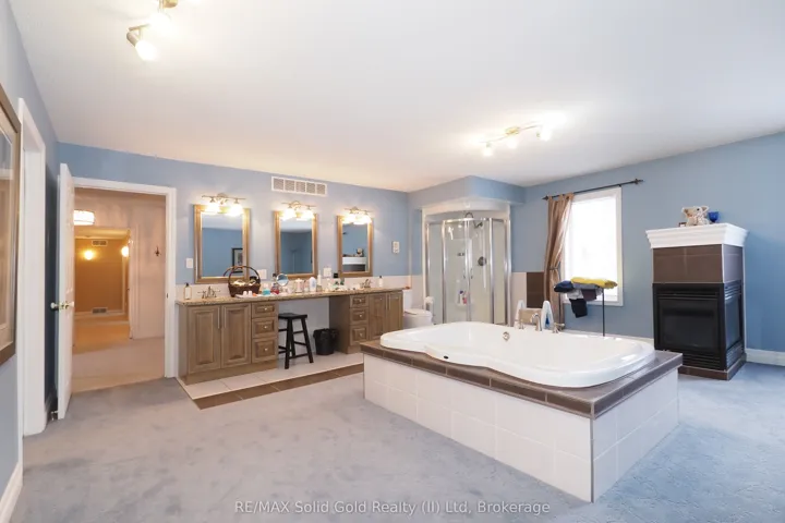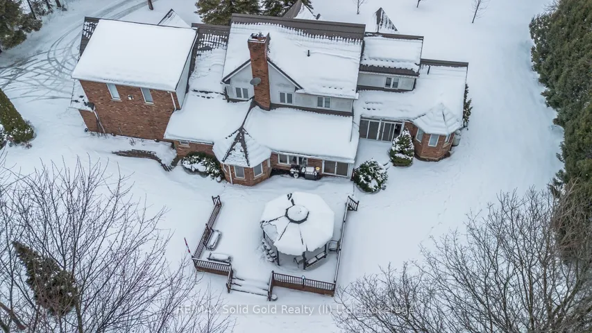 +"PublicRemarks": "Country Estate! On a tranquil 1.25 acre lot. Custom built 4,000+ sq.ft. reclaimed brick residence with metal roof and triple garage. There are 5 bedrooms (each with an ensuite) and 7 bathrooms. This sprawling bungaloft has 2 master bedroom suites - one on the main floor and one upstairs. Gourmet kitchen and dinette overlook the picturesque grounds. Main floor also includes formal living and dining rooms, family room and library/office. Enclosed porch/ sunroom. Outdoor space includes a 900+ sq.ft. deck, gazebo and firepit. Huge workshop in basement plus hobby room. Good access to 401, Breslau airport, Guelph, Kitchener and Cambridge. Nature lovers welcome here!"