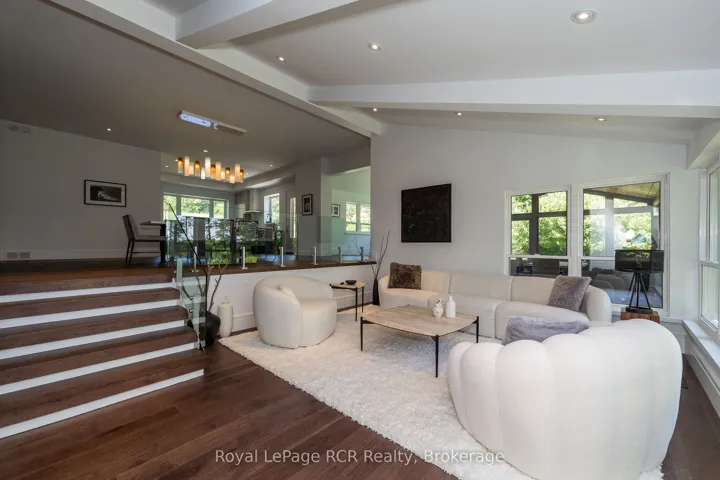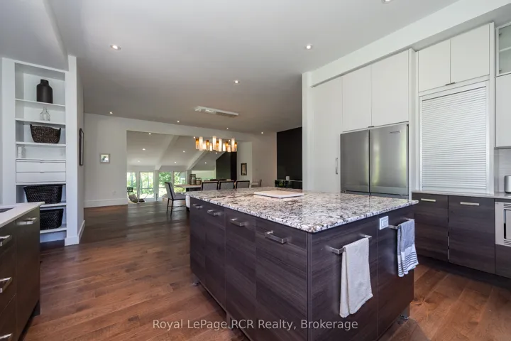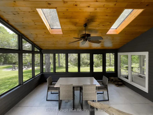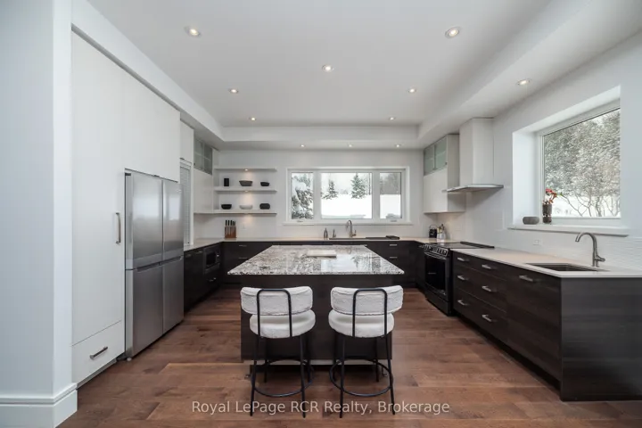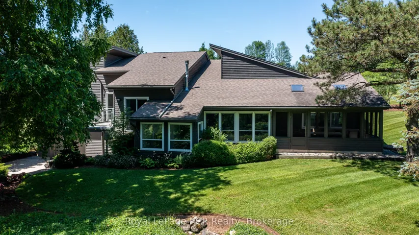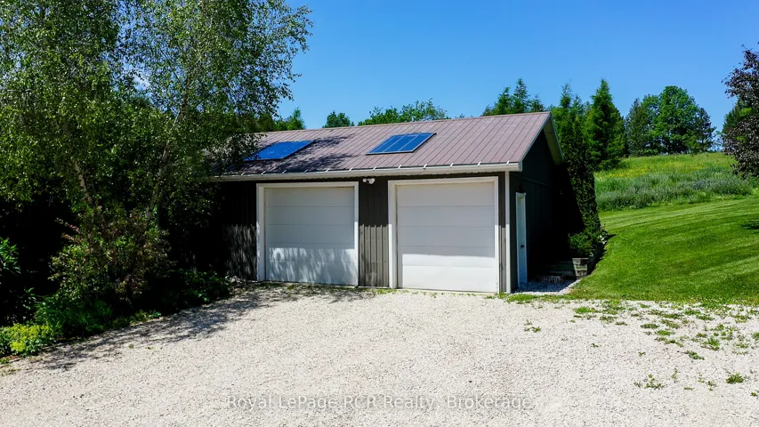+"PublicRemarks": "Luxurious contemporary home set on 50 scenic acres of mixed forest, meadows, and manicured outdoor living spaces. The main level features a sunken living room with gas fireplace, open dining area, and a chef's kitchen with granite countertops, large island, abundant storage, and walk-out to a deck with natural gas BBQ. Adjacent are a bright dinette and screened porch for three-season outdoor dining and entertaining. The primary suite includes dual walk-through closets with built-in cabinetry and an ensuite bath with soaker tub, glass shower, and in-floor heating. Three additional bedrooms, including one with a sitting room and balcony, offer ample space for family and guests. The finished lower level provides a large family room, three-piece bath, laundry, storage rooms, and an attached garage with EV charging outlet and garden entrance to a two-bay drive shed. Modern features include ICF construction, air exchanger, UV water treatment, whole-home surge protection, motorized window shades, Starlink internet, and smart home systems. Enjoy over 4 km of private trails through hardwood forest, regenerating meadows, and orchard trees with sweeping countryside views. Conveniently located on a paved road with natural gas, minutes from Markdale shopping, dining, and hospital, and close to organic farms, the Bruce Trail, skiing, golf, conservation lands, and lakes, this is a four-season retreat in the heart of West Grey."