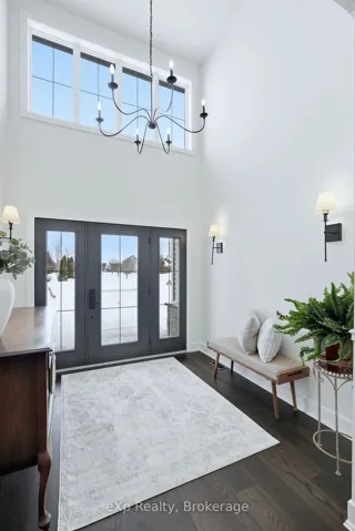 +"PublicRemarks": "Tucked away in one of Listowel's most sought-after neighbourhoods, on the edge of town, this custom-built estate home offers an exceptional blend of privacy, prestige, and contemporary elegance. From the moment you enter, the grand front foyer with soaring 16-foot ceilings creates a striking first impression. The open-concept main level is finished with rich hardwood flooring throughout, seamlessly combining warmth and sophistication. At the front of the home, two generously sized bedrooms share a beautifully finished 4-piece bathroom - ideal for family, guests, or flexible living arrangements. The heart of the home is the designer kitchen, featuring quartz countertops, a large entertaining island, and a walk-in pantry, all flowing effortlessly into the dining area. Step outside to the expansive covered outdoor living space, complete with a gas fireplace, creating a perfect setting for entertaining or relaxed mornings and evenings outdoors. The great room is anchored by a dramatic stone fireplace and framed by large windows that flood the space with natural light, offering both comfort and refined style. The primary suite serves as a private retreat, showcasing a spacious bedroom, a spa-inspired 5-piece ensuite with soaker tub, glass shower, double vanity, and a generous walk-in closet designed with both form and function in mind. Additional main-floor highlights include a convenient laundry room, a mudroom with direct access to the oversized double-car garage, and a rare walk-down entry to the fully finished lower level. The lower level expands the home's versatility, offering two additional bedrooms, both with walk-in closets, a full 4-piece bathroom, and an expansive living area ideal for multi-generational living, entertaining, or recreation. An exceptional offering that combines luxury, space, and tranquility-this is refined estate living at its finest in the heart of Listowel. Added value with Tarion warranty plus 50-year warranty on shingles."