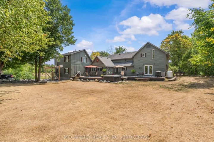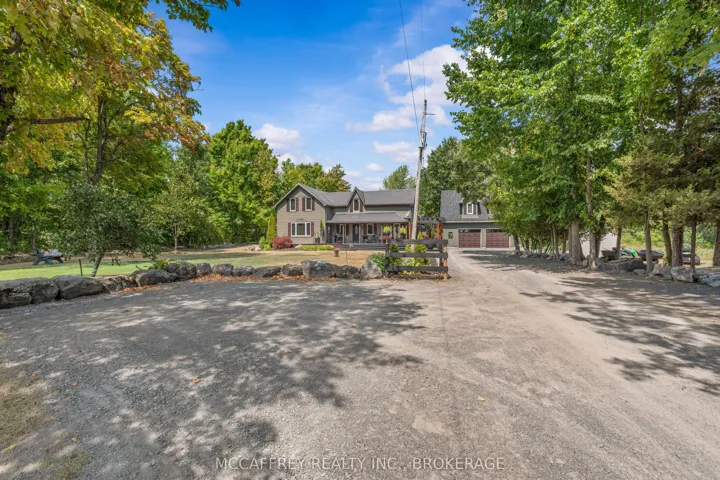 +"PublicRemarks": "Nestled in the pristine countryside is this remarkable 1.5 story country home, perfectly situated on over 17 acres of lush property. This expansive acreage also boasts a spacious, detached two-car garage with bonus living space above, ideal for guests or a private home office. The picturesque grounds further feature fenced-in areas suitable for horse riding and a three-bay drive shed for additional storage, stimulating your pastoral idyllic dreams. Stepping onto the inviting covered porch and through the front door, you are welcomed by charming hardwood floors that guide you throughout the home. The ample kitchen area offers an island for casual meals or food prep and an under-stairs pantry closet to aid with storage. Bright and warm, the dining room is adorned with large windows that offer an abundance of natural light. Adjacent lies the cozy living room, featuring patio doors that lead to the backyard deck, providing easy outside access for those warmer days and leisurely evenings. The home also hosts a main floor space that offers the versatility to be used as a bedroom or additional family room, which conveniently provides access to the yard and laundry area. The first floor also offers a 3 piece bathroom for easy convenience. On the second level, a large primary bedroom awaits with a walk-through closet and a lovely 4 piece ensuite, truly your private retreat. A communal area that can serve as a children's play area or office space leads to an additional bedroom on this level, providing the perfect compartmentalization necessary for modern living. Outdoors, the scenery is nothing short of breathtaking. Surrounded by mature trees and immaculate landscaping, this rural haven offers boundless opportunities to enjoy nature or cultivate your personal touch to make your country dreams manifest. This property encapsulates a serene and relaxed lifestyle, harmoniously combining luxury and comfort in a rural setting."