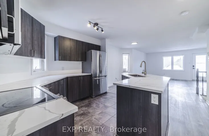 +"PublicRemarks": "Welcome home to this beautifully updated condo in Kemptville Meadows, offering modern comfort, exceptional convenience, and two dedicated parking spaces. This bright 2-bedroom, 3-bathroom residence is ideally situated directly across from Kemptville Hospital, close to schools, shopping, and just minutes from Highway 416-making it a perfect choice for commuters and professionals alike. Step inside to a welcoming open-concept layout featuring new flooring, quartz countertops, and stainless steel appliances including a stove and fridge. High ceilings and oversized windows fill both levels with natural light, creating an airy and inviting atmosphere that is rarely found, even on the lower level. The thoughtfully designed floor plan offers a main-level powder room, a full bathroom, and a private primary ensuite, providing comfort, functionality, and privacy. The upper level features well-proportioned bedrooms, front-loading laundry conveniently located nearby, and ample storage space ready for your personal touches. Additional highlights include a natural gas forced-air furnace, an owned hot water tank (not rented), and the added convenience of two parking spots-a valuable feature in this sought-after community. Move-in ready and located in a prime area, this exceptional home is ideal for first-time buyers, downsizers, or investors seeking quality, comfort, and location."