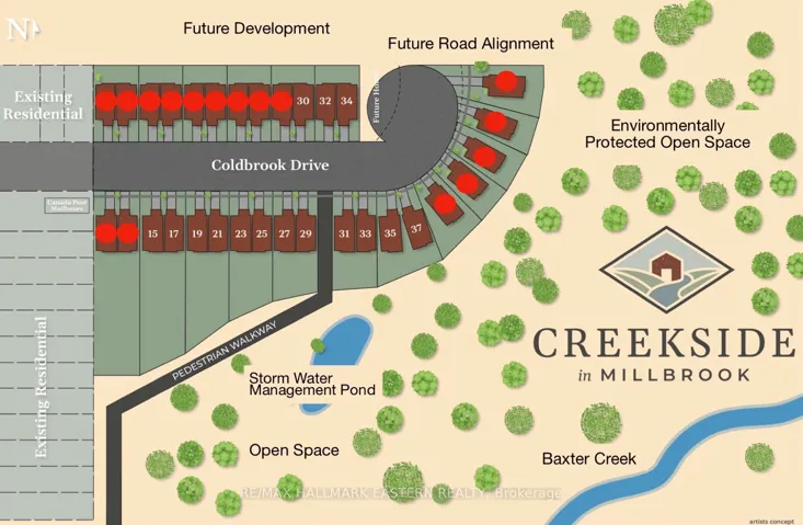 +"PublicRemarks": "New Home "The Berkshire" upgraded elevation B, with walk-up basement on premium lot backing on to environmentally protected green space, is ideal for multi-generational home, or accessory apartment application. This high quality built home by the Veltri Group, has 4 bedrooms, 3 baths, main floor laundry room and Den, and attached 1.5 car garage with inside entry - 1843 square feet of beautifully finished living space plus unfinished basement with rough-in for 4th bath. Features include 9 foot troweled ceilings & engineered hardwood floors on the main floor, quartz countered kitchen with walkout to back deck with stairs, natural gas fireplace in living room, and much more. Located in "Creekside in Millbrook", a small quiet family neighbourhood which will include a walkway through a treed parkland leading to Centennial Lane, for an easy walk to the magical downtown and Millbrook Valley Trail system. Open Houses in Creekside in Millbrook are hosted at 37 Coldbrook Drive, Saturdays & Sundays, 1-4 pm"