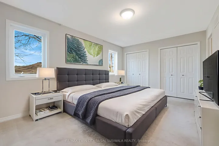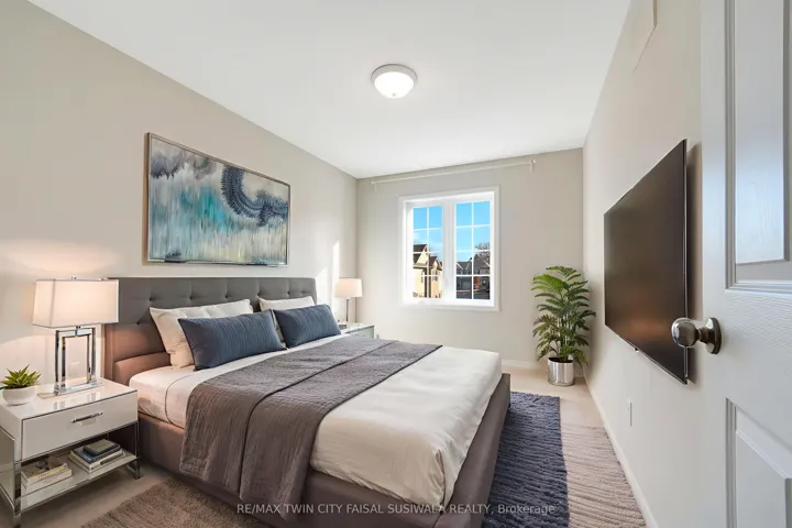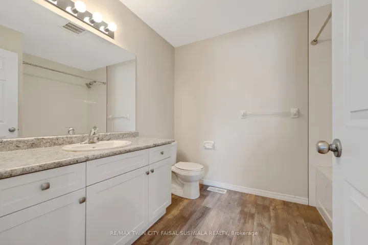 +"PublicRemarks": "CLEAN, CONTEMPORARY & FULL OF NATURAL LIGHT! This bright, open-concept end-unit townhome feels instantly welcoming with its neutral tones, modern finishes, and thoughtfully designed layout. The spacious main floor features a stylish kitchen complete with an island, breakfast bar seating, and ample storage-perfect for everyday living and entertaining. The living room opens through sliders to a private back patio, ideal for relaxing or enjoying a morning coffee. Upstairs, you'll find 3 generous bedrooms and 2 full bathrooms in total, including a primary bedroom with its own ensuite. The unspoiled basement is ready for your personal touch and future possibilities. Located just minutes from Conestoga College, scenic walking trails, everyday amenities, and with quick 2-minute access to the 401, this home blends comfort with convenience. This unit offers a water softener, garage door open, freshly shampooed carpets and more. A fantastic opportunity for first-time buyers, investors, or young families. Additional parking available for rent or purchase. Photos are virtually staged."