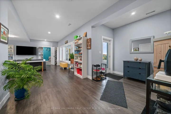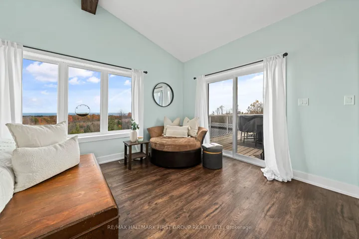 +"PublicRemarks": "Experience breathtaking views of Lake Ontario from this custom 2020-built bungalow set on 24+ rolling acres with private hiking trails. This stunning 3+2 bed, 5 bath home offers open concept living with hardwood throughout, a chef's kitchen with granite counters, stainless steel appliances & butler's pantry. The living and dining areas showcase panoramic views and walkout access to the expansive upper deck. Primary suite with spa-like ensuite, W/I closet & deck access. Bright walkout lower level features 2 bedrooms, 4-pc bath, cozy rec room & large studio with treatment room & 2-pc bath-ideal for home business or in-law suite. Enjoy the geothermal heating system, 6 zones of in-floor heating, Swim Spa with new TREX decking & hardtop gazebo. Multiple outbuildings (some with hydro/water) & versatile multi-use zoning complete this one-of-a-kind property."