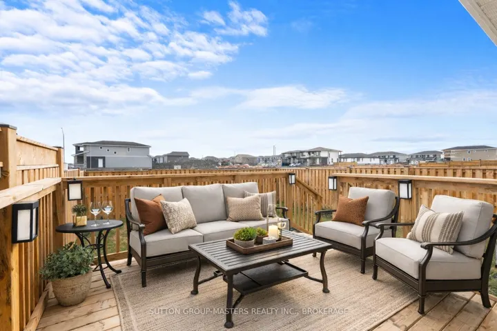 +"PublicRemarks": "Discover the "Emerald" Model by Greene Homes, a thoughtfully designed home that blends modern sophistication with everyday comfort. This home showcases a walkout basement on a premium lot, offering additional natural light and seamless access to the outdoors. From the moment you arrive, the striking curb appeal sets the tone. Features include: Upgraded Sunrise Granada stone façade paired with black exterior railings and Terra Bronze soffit, fascia, and eaves for a refined, upscale finish. Black coloured window vinyl and Tricorn Black custom-painted doors create a sleek, contemporary exterior design. Elegant touches such as a tapestry detail above the garage door and enhanced stone posts with Terra Bronze flashing complete the exterior. Inside, designer details continue with a welcoming foyer featuring a Sullivan glass insert door with transom and a Tavaris handle set with Halifax lever hardware in satin nickel. Upgraded hardware throughout, including Halifax levers and Downtown deadbolts on key interior and exterior doors. A full glass rear basement door with internal blinds and obscured glass in the ensuite for both function and style. This Emerald Model combines craftsmanship, modern finishes, and thoughtful upgrades to create a home that is both beautiful and practical. With its walkout lower level and premium selections throughout, its a home designed to stand out."
