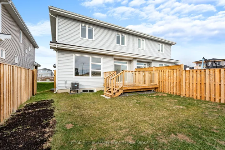+"PublicRemarks": "Welcome to 229 Superior Drive in Lakeside Ponds - Amherstview, Ontario! This popular Barr Homes model, the "Sapphire", is an incredibly spacious semi-detached home that boasts 1,800 square feet of finished living space with 3 bedrooms and 2.5 bathrooms and is ready for immediate occupancy! Upon entering the home you will find a welcoming ceramic tile front foyer with closet space and a 2 piece powder room as you make your way into the open concept kitchen area. The kitchen features new appliances, a gorgeous backsplash, and quartz kitchen countertops including the grand island, great for hosting/entertaining. Just off the kitchen you will kind a mudroom with access to the garage that has an automatic opener for easier access. On the second level is where you will find the laundry room and 3 generous sized bedrooms including the primary which has it's own walk-in closet and 4 piece ensuite. The unfinished basement has a 3 piece rough-in and gives you full range of creativity allowing you to finish the space however you would like! Lastly, the fully fenced backyard lets you privately relax as you sit on the 12' x 12' deck taking in the morning sunrise or evening sunset. Other features of the home include a 5' wide stamped concrete pad which allows you to get two cars in the driveway side by side, blinds on every window, AND the hot water tank is OWNED! Do not miss out on your chance to own a stunning Barr Homes build here in the beautiful Lakeside Ponds!"