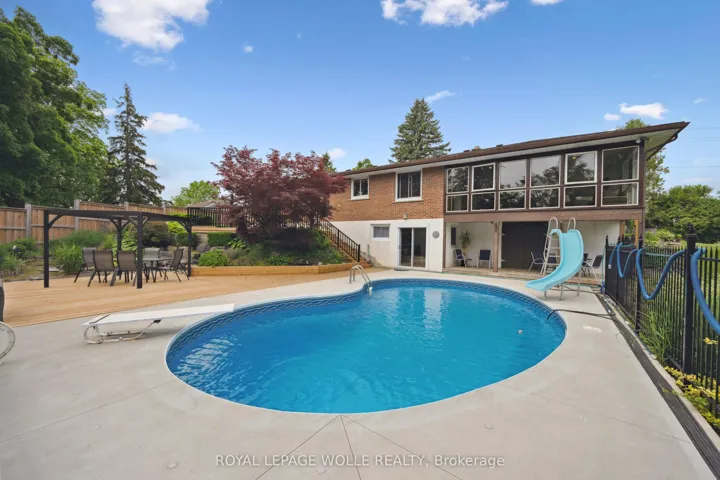 +"PublicRemarks": "PRICED TO SELL!! What a spectacular CENTRALLY LOCATED property overlooking Brookfield Golf Course in Cambridge!! Welcome to 3850 Beaverdale Road. This amazing property is Boasting 1.78 acres with a river, golf course, great privacy and an inground pool all on the property. You just cant get views like this anywhere! Enjoy great curb appeal as you walk up your stamped concrete driveway with parking for several cars. As you enter this 3 bed 2 bath bungalow you will be impressed how all windows lead you to looking at your expansive view. The main floor is carpet free and is bright and open with an incredible 3 season sunroom. The walkout basement includes a bathroom, rec room, den and walks out to your inground pool area. Many important upgrades have been done on this property including the Septic tank and weeper (2015) , pool concrete patio and liner (2022), lower deck out back (2024) upper deck (2023), Hot water tank (25) ,Water softener (2023), Furnace (2021) Windows throughout (2006) sunroom windows (10-15yr) washing machine (2023) kitchen done (2004) New pressure tank for well (2025) Let your creativity begin on this solid brick bungalow which is move in ready or set to make it your own oasis!"