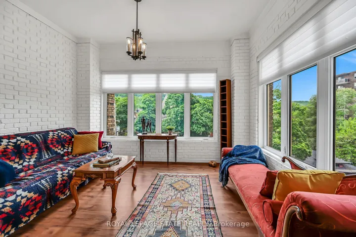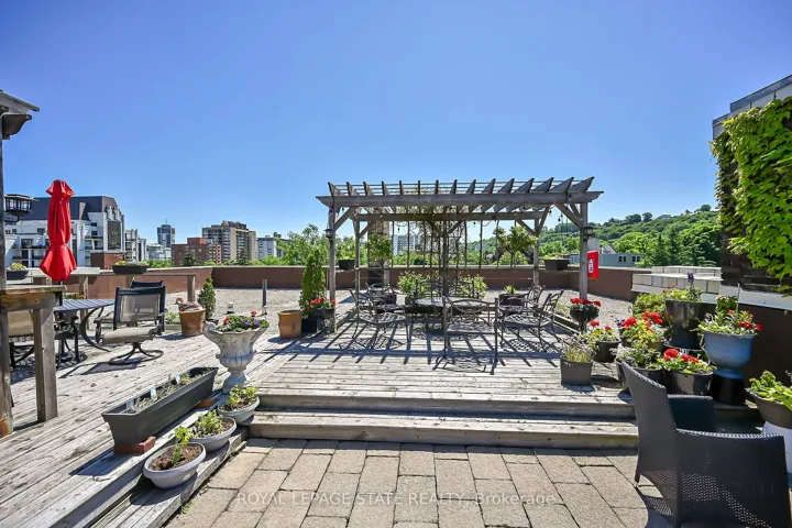 +"PublicRemarks": "Rare Find! Welcome to this timeless penthouse in the Historic Herkimer Apartments! Located in the heart of Hamilton's prestigious Durand neighbourhood, this spectacular 2-bedroom, 1.5-bathroom condo blends historic elegance with modern convenience. This penthouse unit features inlaid hardwood floors, coffered 10' ceilings, crown mouldings, pot lights, and a gas fireplace in the living room with built-in cabinetry. The open-concept kitchen boasts granite counters, an island with breakfast bar, and abundant cabinetry. Enjoy the 3 piece jacuzzi shower, in-suite laundry, and two separate entrances for added flexibility. Relax in the sunroom with breathtaking views of the Niagara Escarpment, through oversized windows, or entertain on the rooftop deck and terrace available to residents. Including in the terrace breathtaking city views, are sitting areas, gas bbq and gas fire table under a large gazebo. For added peace of mind, the in unit Furnace and Air-conditioning has been replaced in November 2025. Includes garage parking, locker, and all the charm of a historic building with the modern lifestyle of today. Don't miss this rare opportunity to own a piece of architectural history in one of Hamilton's finest neighborhood's! RSA"